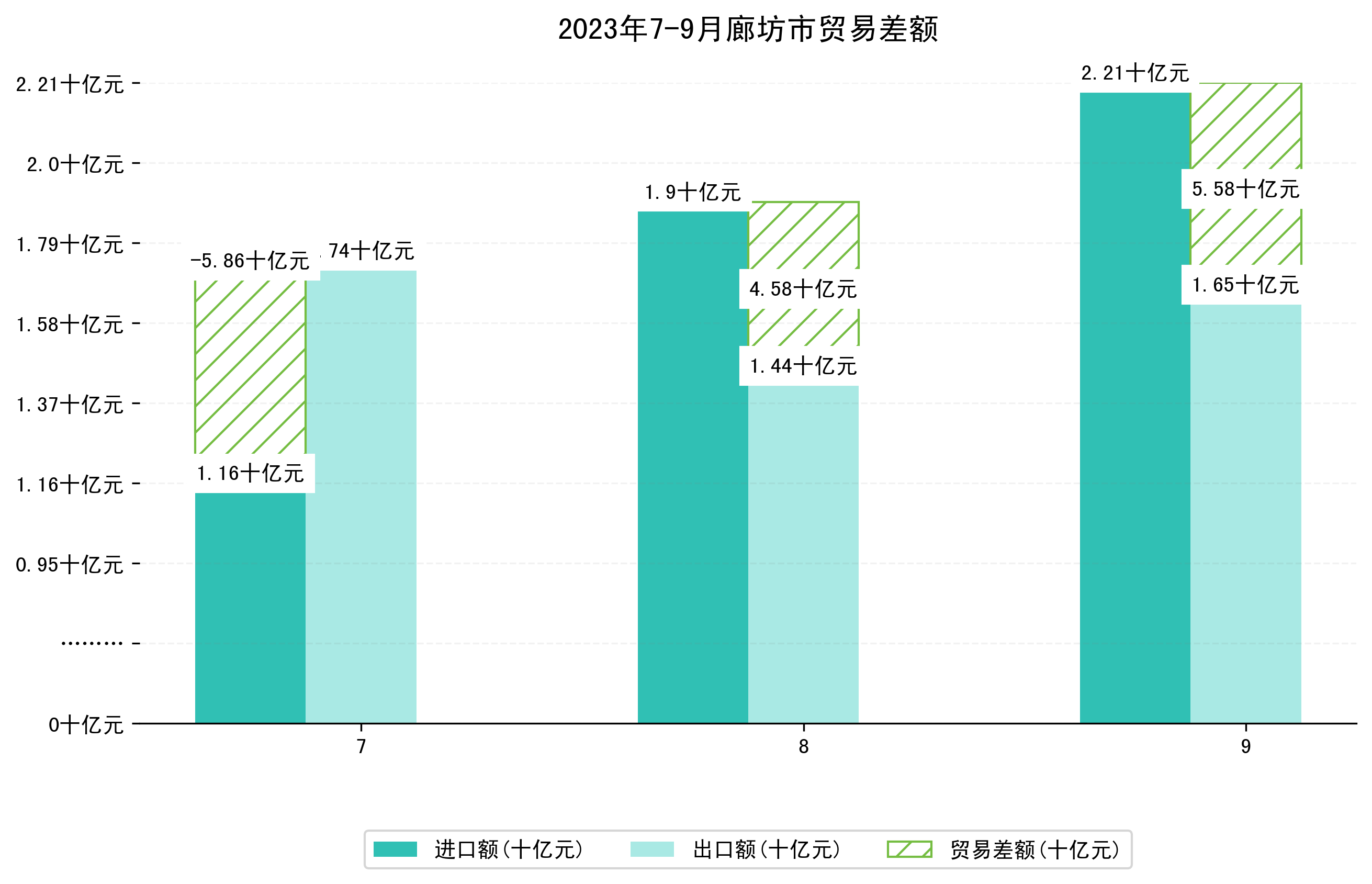 2023年9月廊坊市进出口总额及进出口差额统计分析