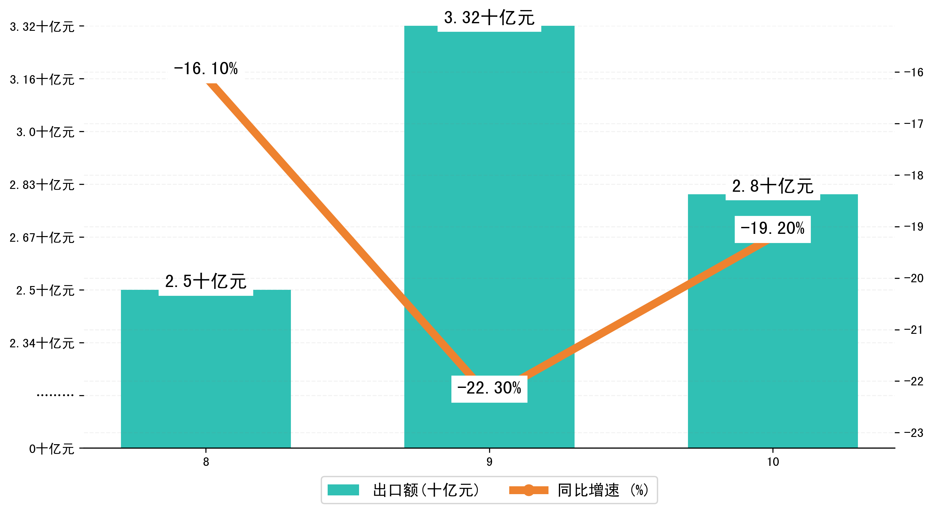 (图二:2023年8-10月吉安市出口额)