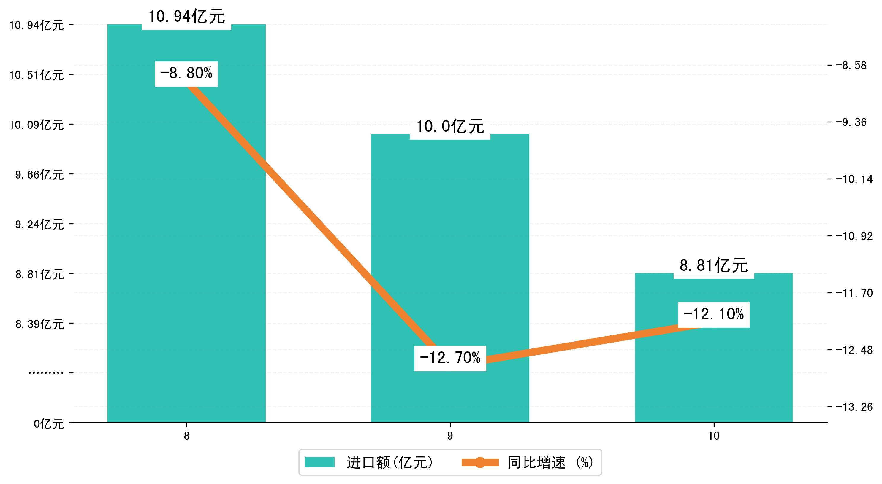 (图三:2023年8-10月吉安市进口额)