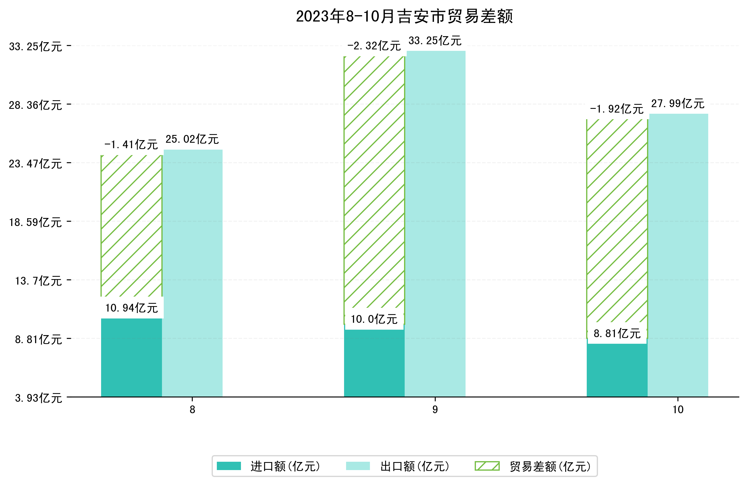 (图四:2023年8-10月吉安市贸易差额)