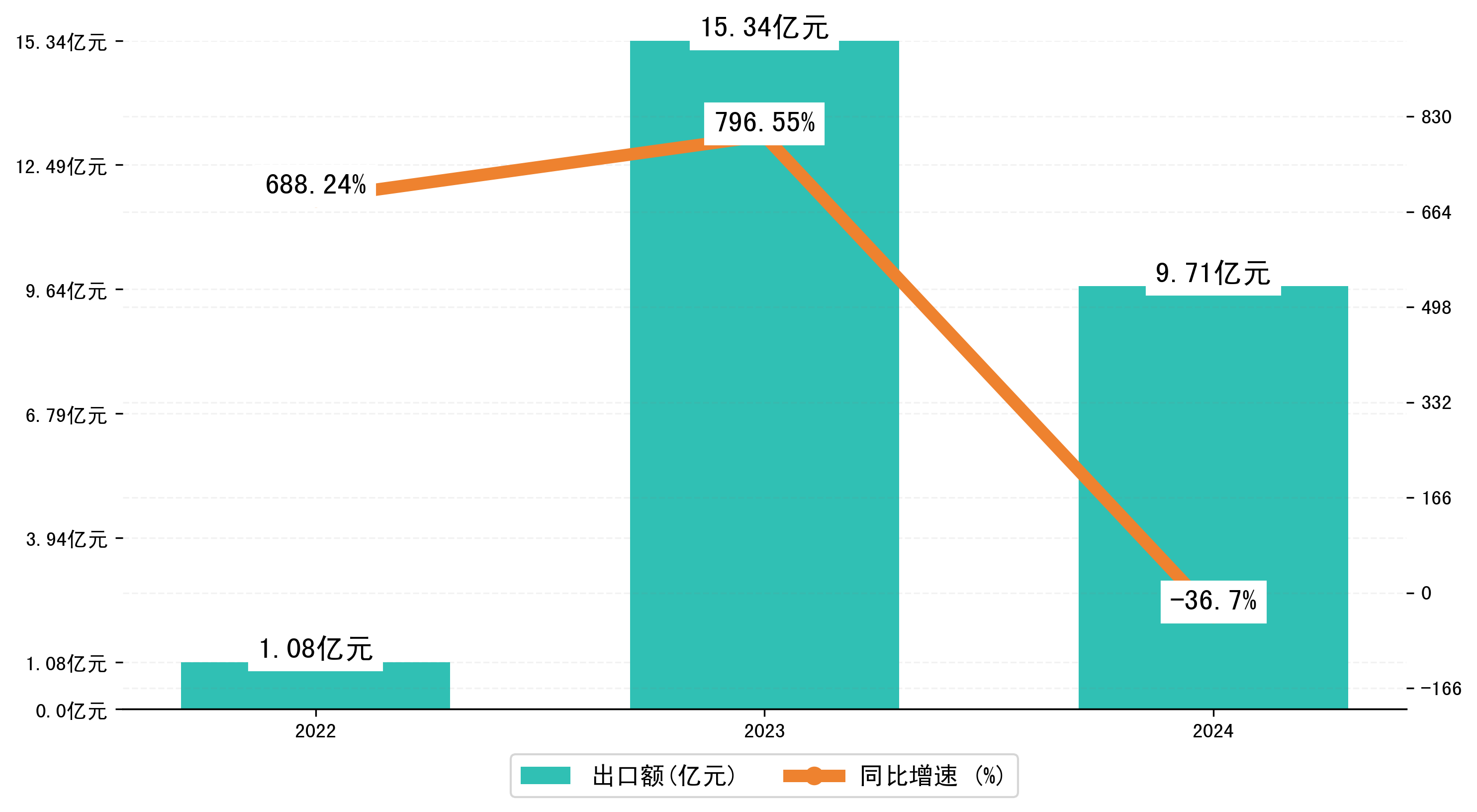 以人民币计,2024年1-1月满洲里市出口额为9,7130.4578万元,相比上年同期减少了5,6308.3831万元,同比减少了-36.70%。