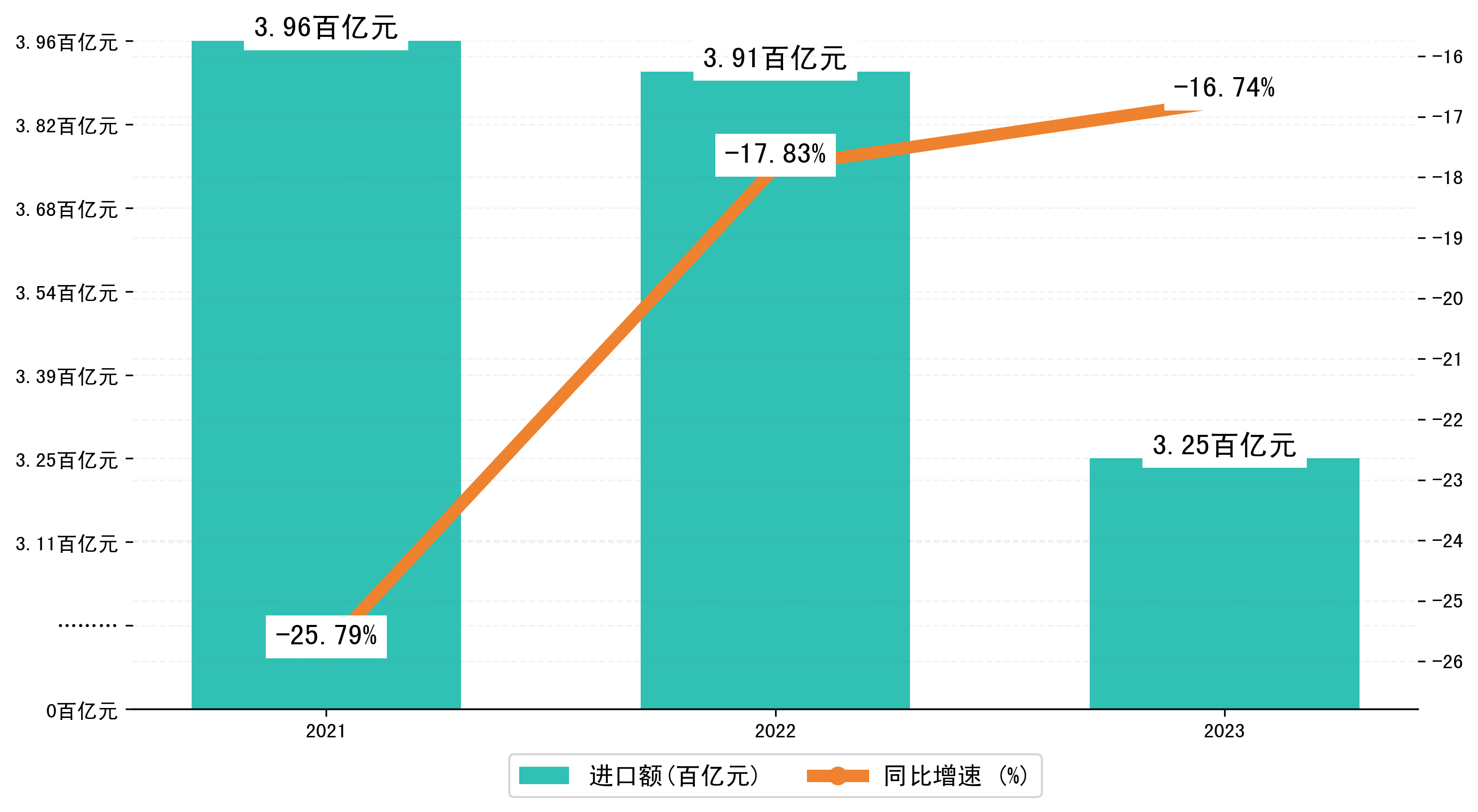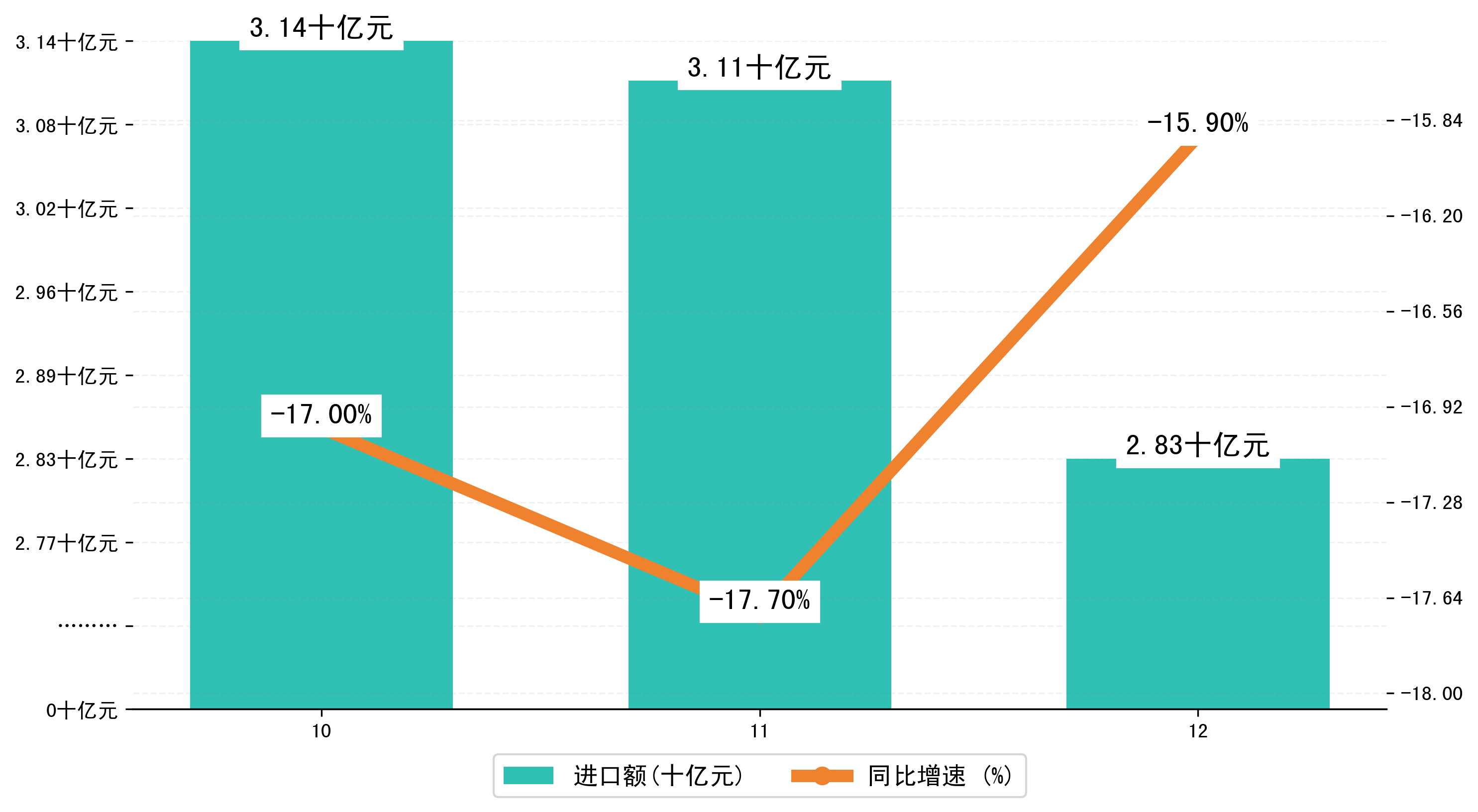 以人民币计,2023年1-12月南昌市进口额为325,2849.8723万元,相比上年同期减少了65,3829.7902万元,同比减少了-15.90%。