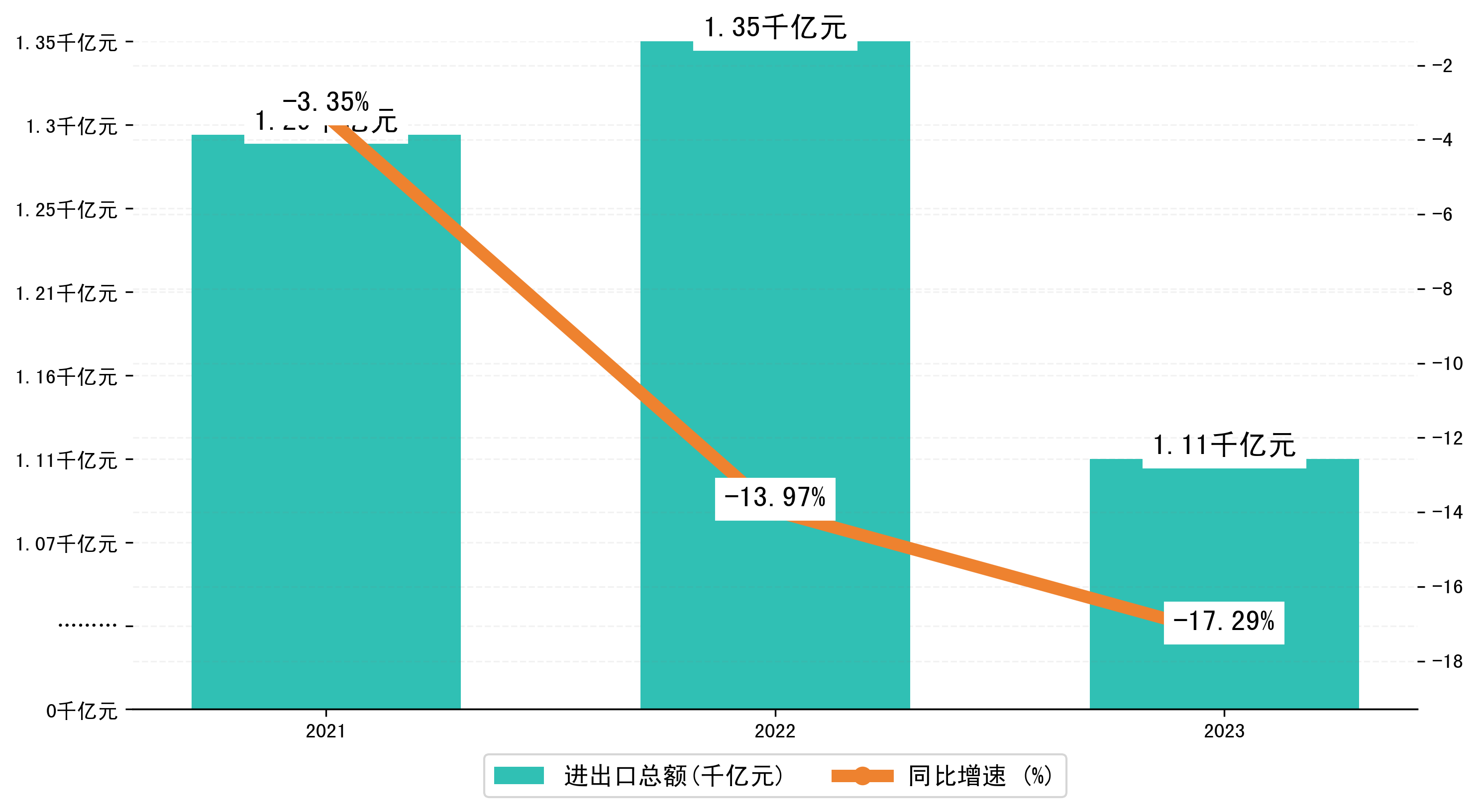 以人民币计,2023年1-12月南昌市进出口总额为1112,9077.7522万元,相比上年同期减少了232,6547.0809万元,同比减少了-13.80%。
