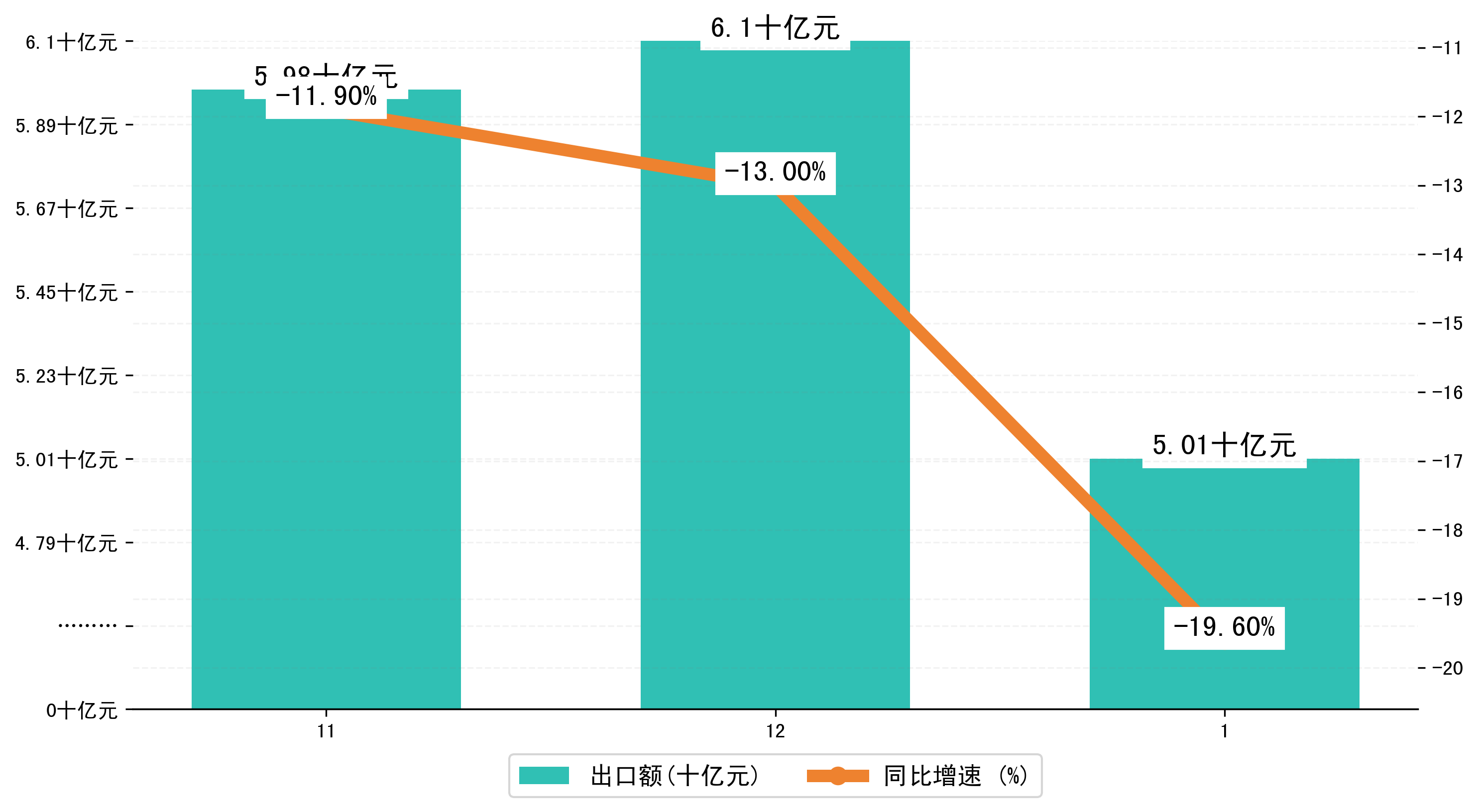 以人民币计,2024年1-1月南昌市出口额为50,1290.5098万元,相比上年同期减少了13,6517.1896万元,同比减少了-19.60%。