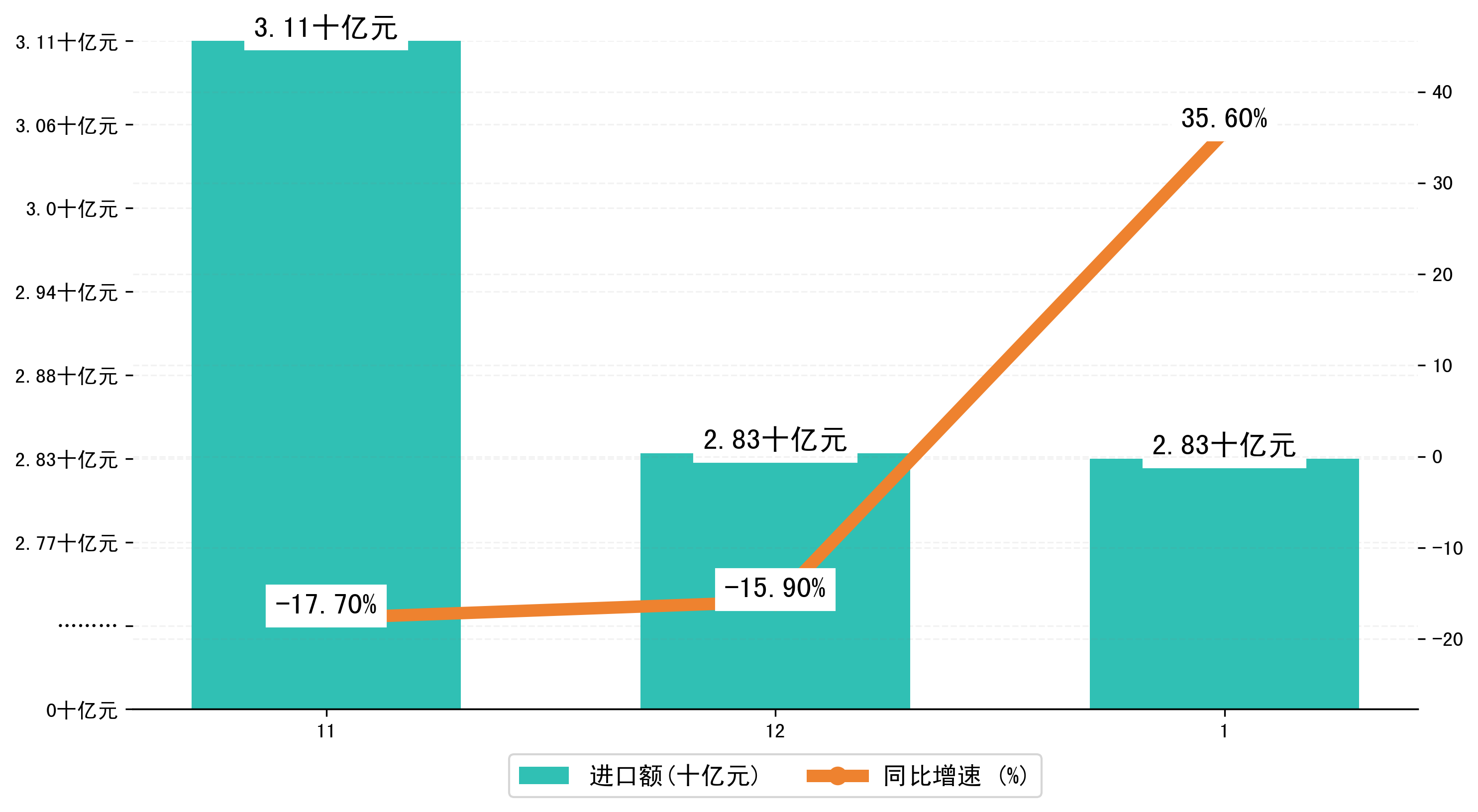 以人民币计,2024年1月南昌市进口额为28,2654.2098万元,相比上月减少了372.2714万元;相比上年同期增加了7,4022.9792万元,同比增加了35.60%。