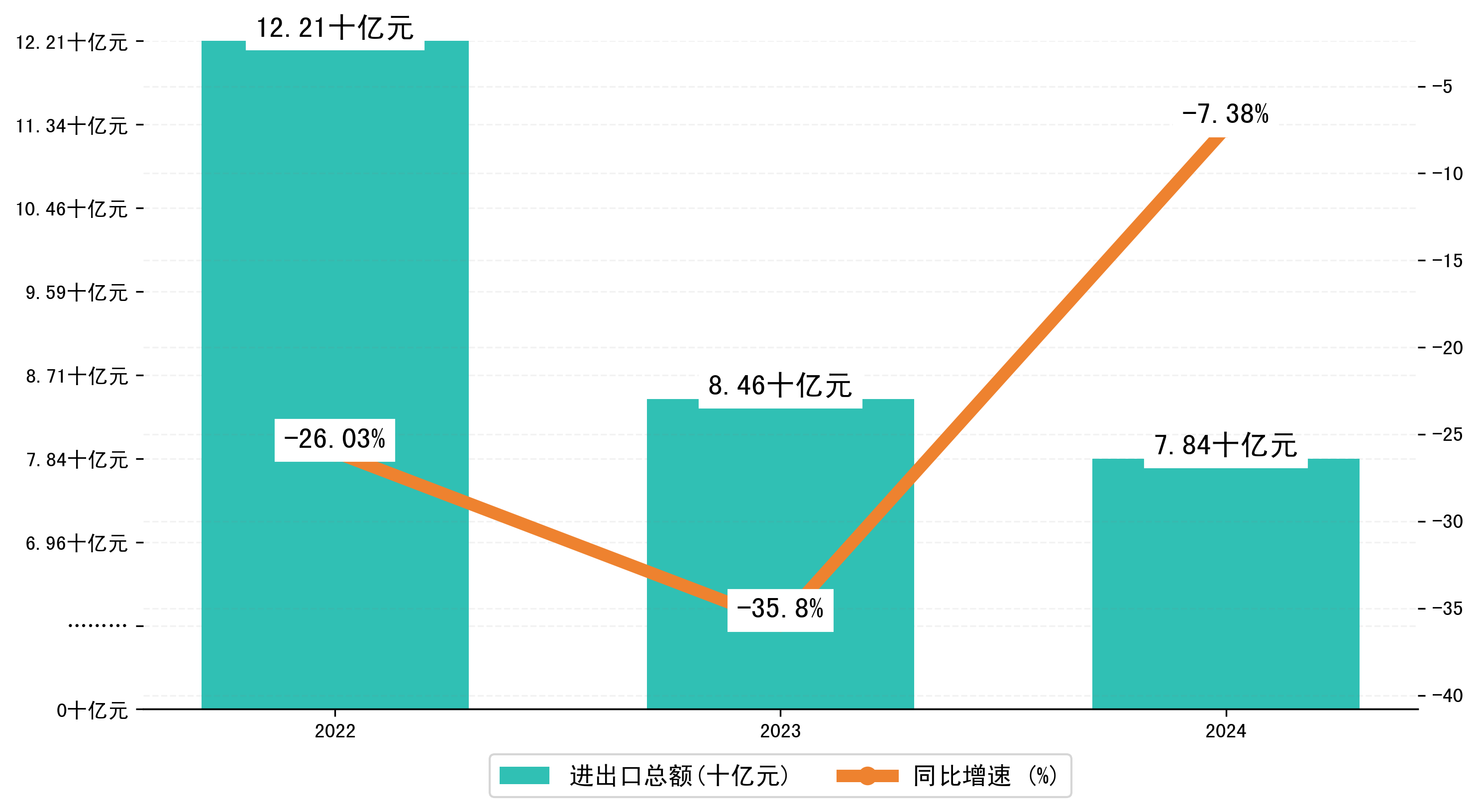 以人民币计,2024年1-1月南昌市进出口总额为78,3944.7196万元,相比上年同期减少了6,2494.2105万元,同比减少了-5.80%。