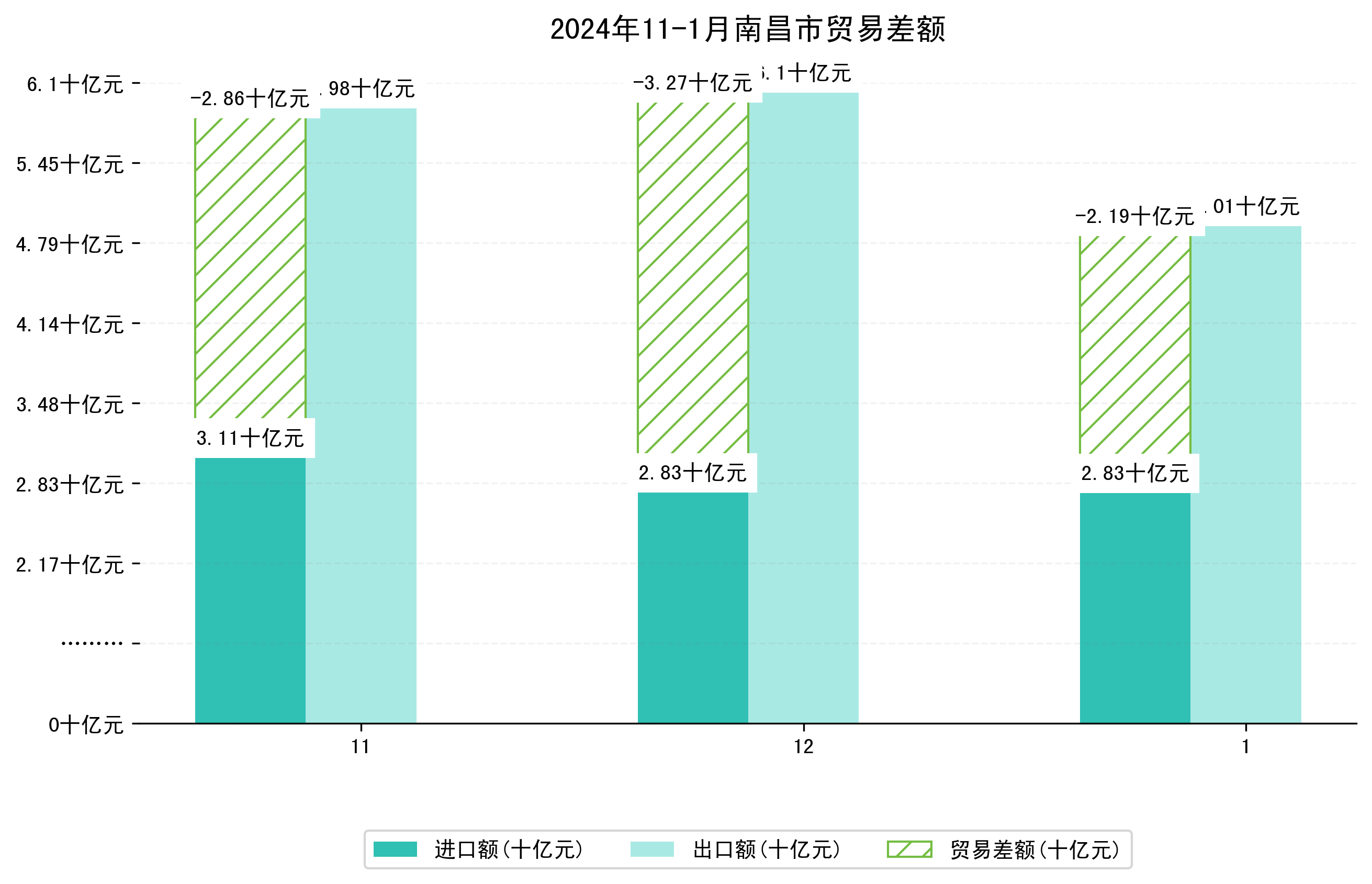 2024年1月南昌市进出口总额及进出口差额统计分析