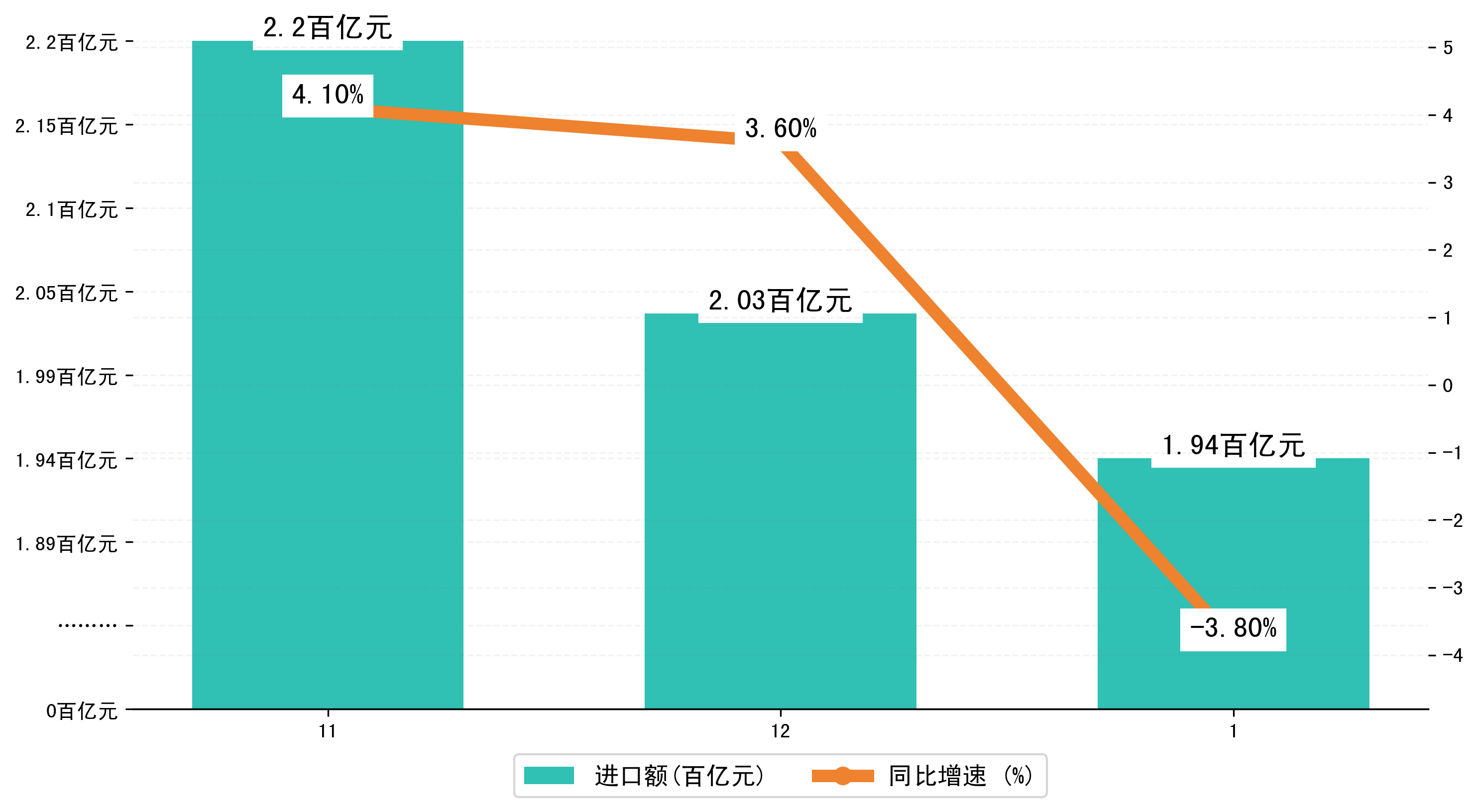 以人民币计,2023年1-1月南京市进口额为194,3895.2125万元,相比上年同期减少了8,8904.5952万元,同比减少了-3.80%。
