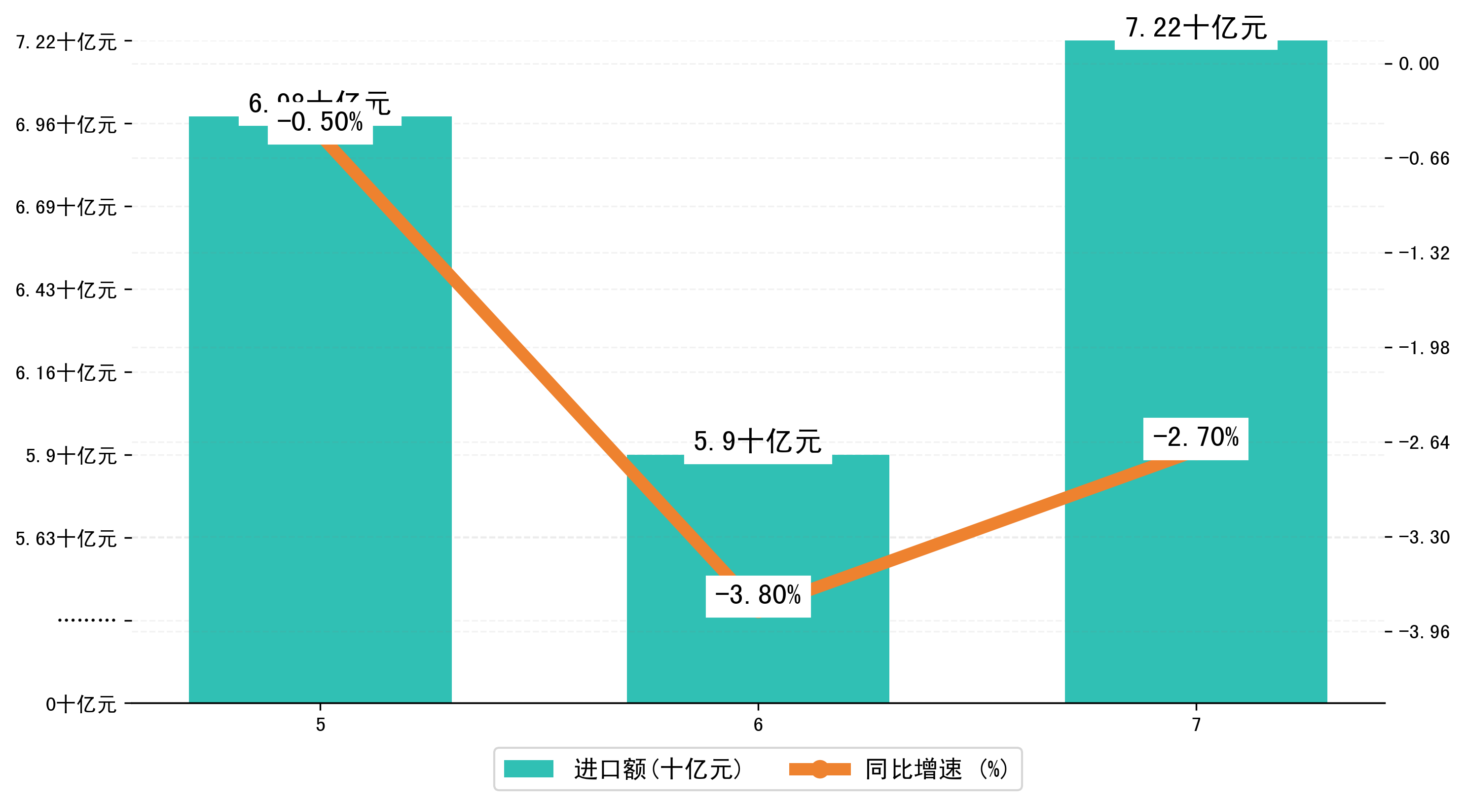 以人民币计,2025年7月日照市进口额为72,2126.4362万元,相比上月增加了13,2369.9602万元;相比上年同期增加了1,3337.6529万元,同比减少了-2.70%。
