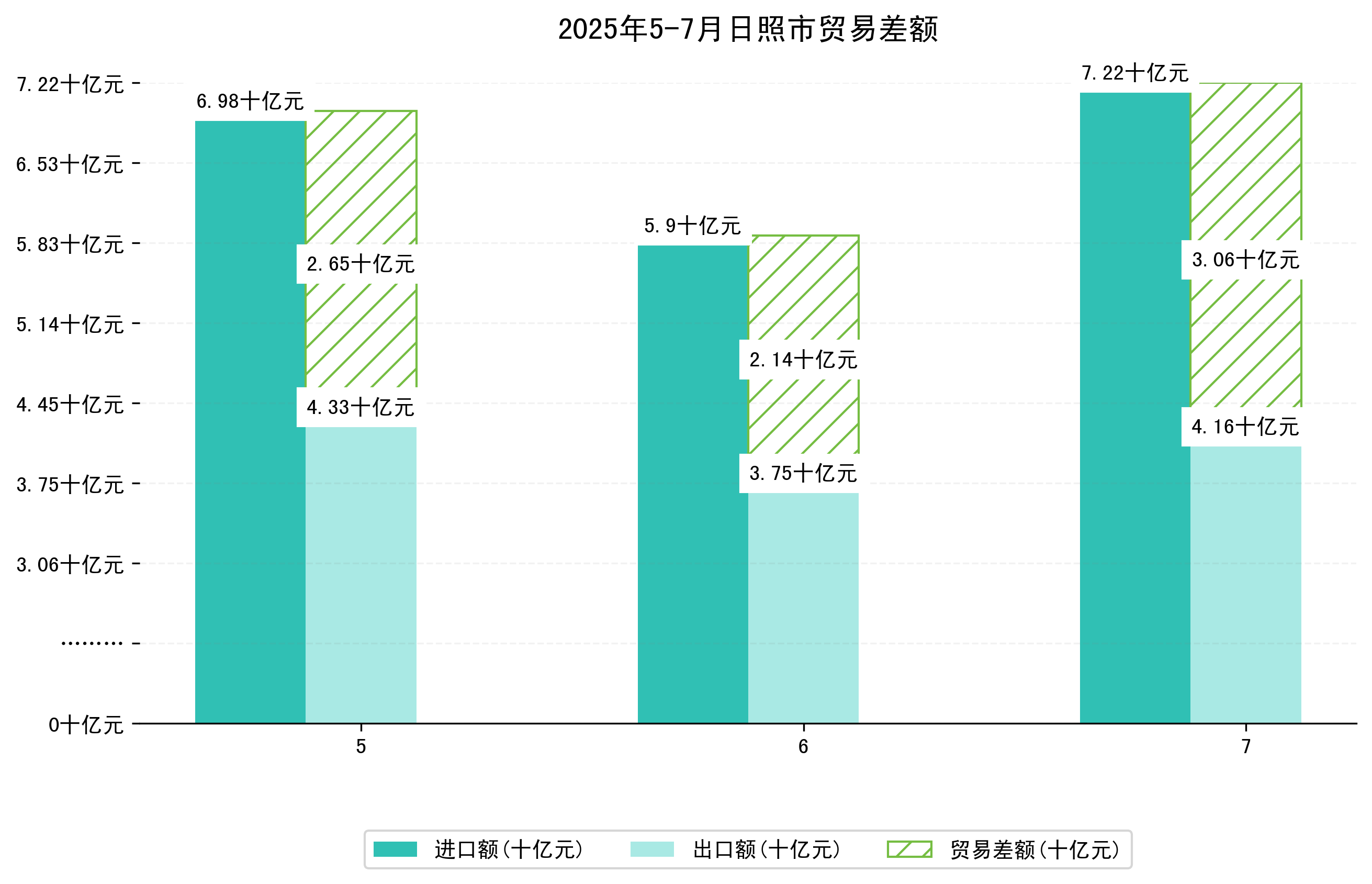 一、2025年7月日照市单月出口总额及进出口差额统计分析