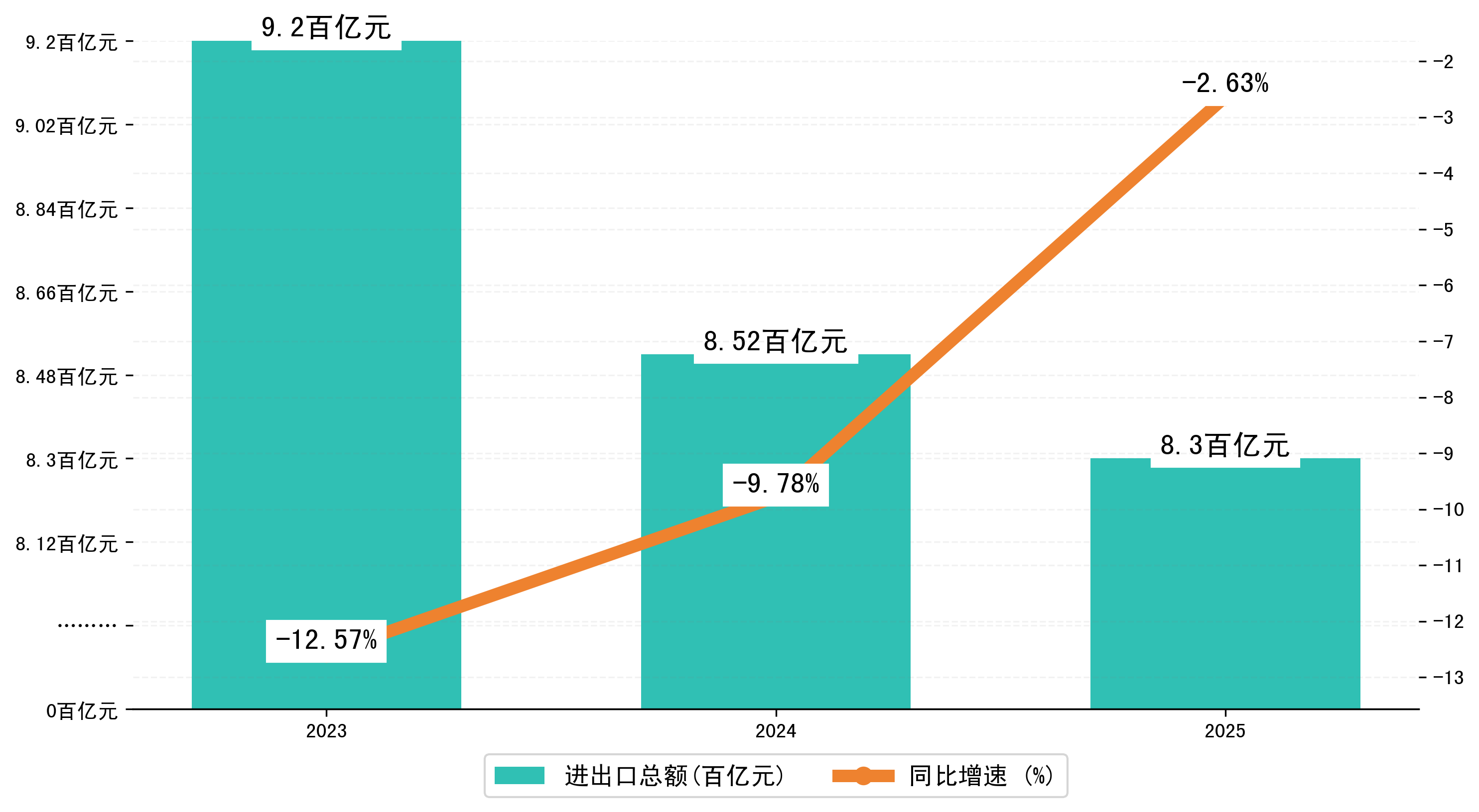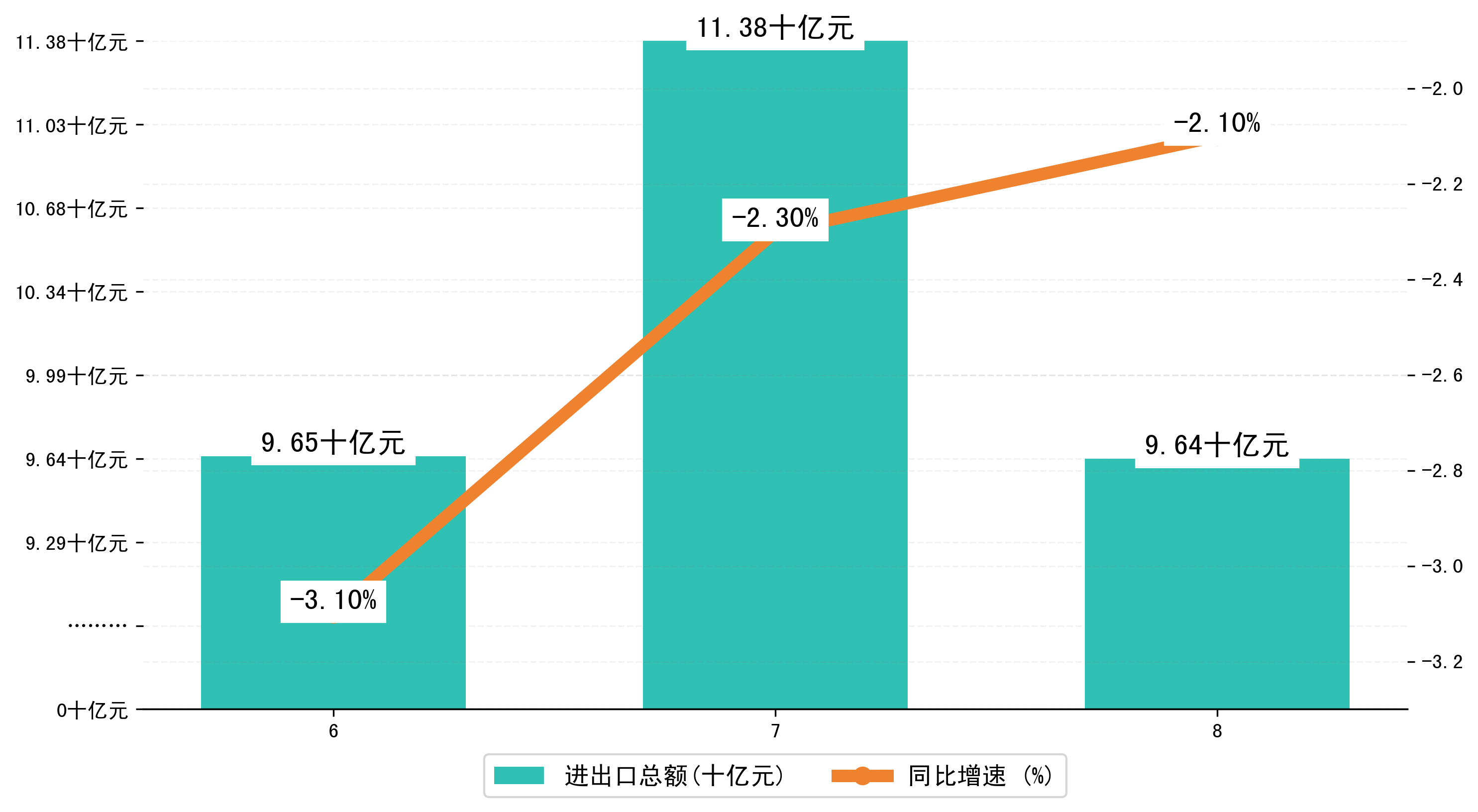 以人民币计,2025年1-8月日照市进出口总额为829,9560.7486万元,相比上年同期减少了22,4436.4562万元,同比减少了-2.10%。