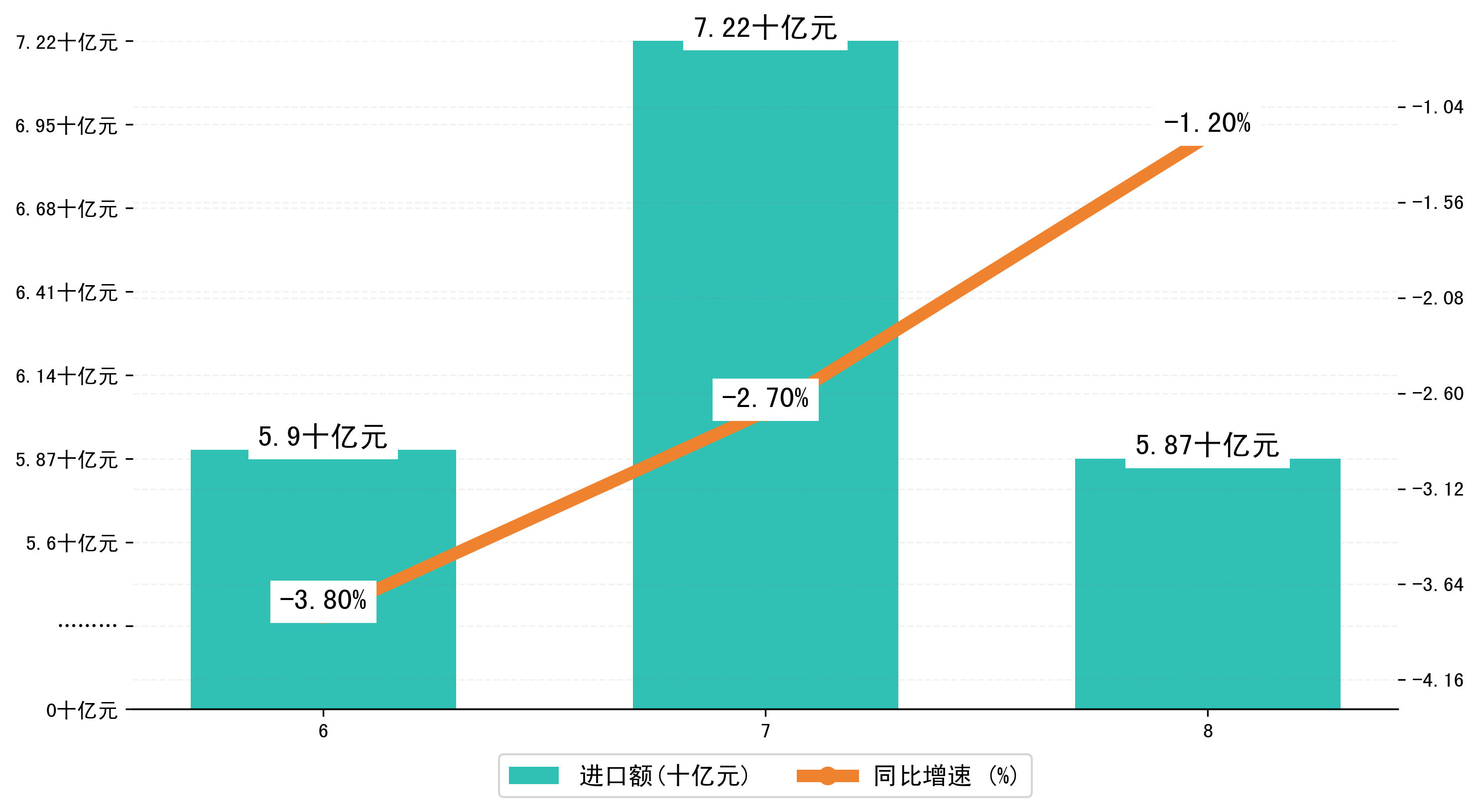 以人民币计,2025年8月日照市进口额为58,6929.5893万元,相比上月减少了13,5196.8469万元;相比上年同期增加了5,1950.4765万元,同比减少了-1.20%。