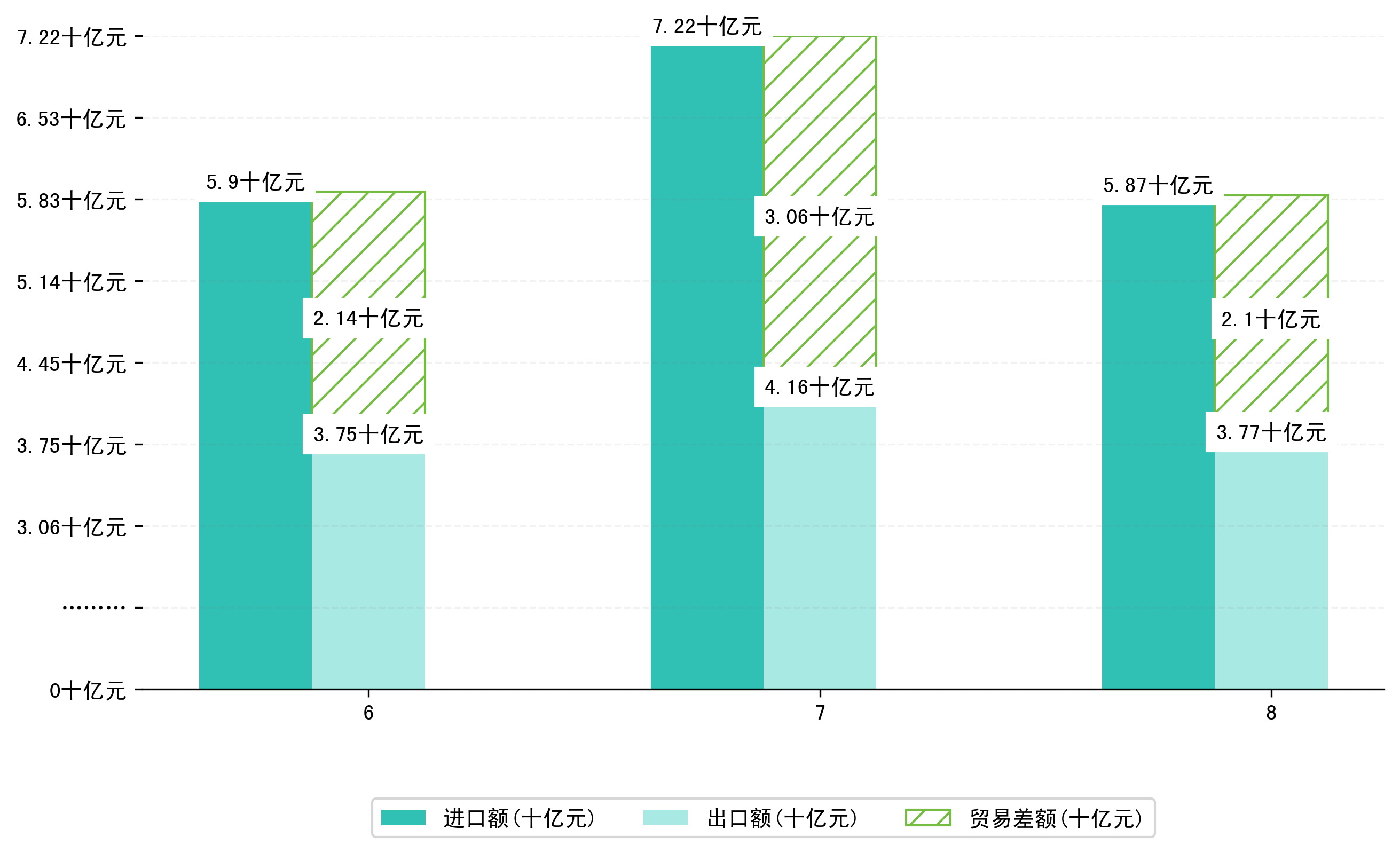 以美元计,2025年8月日照市贸易差额为2,9322,1858万美元(贸易逆差),相比上月增加了1,3387,1537万美元;相比上年同期减少了1,7190,1680万美元,同比减少141.69%。