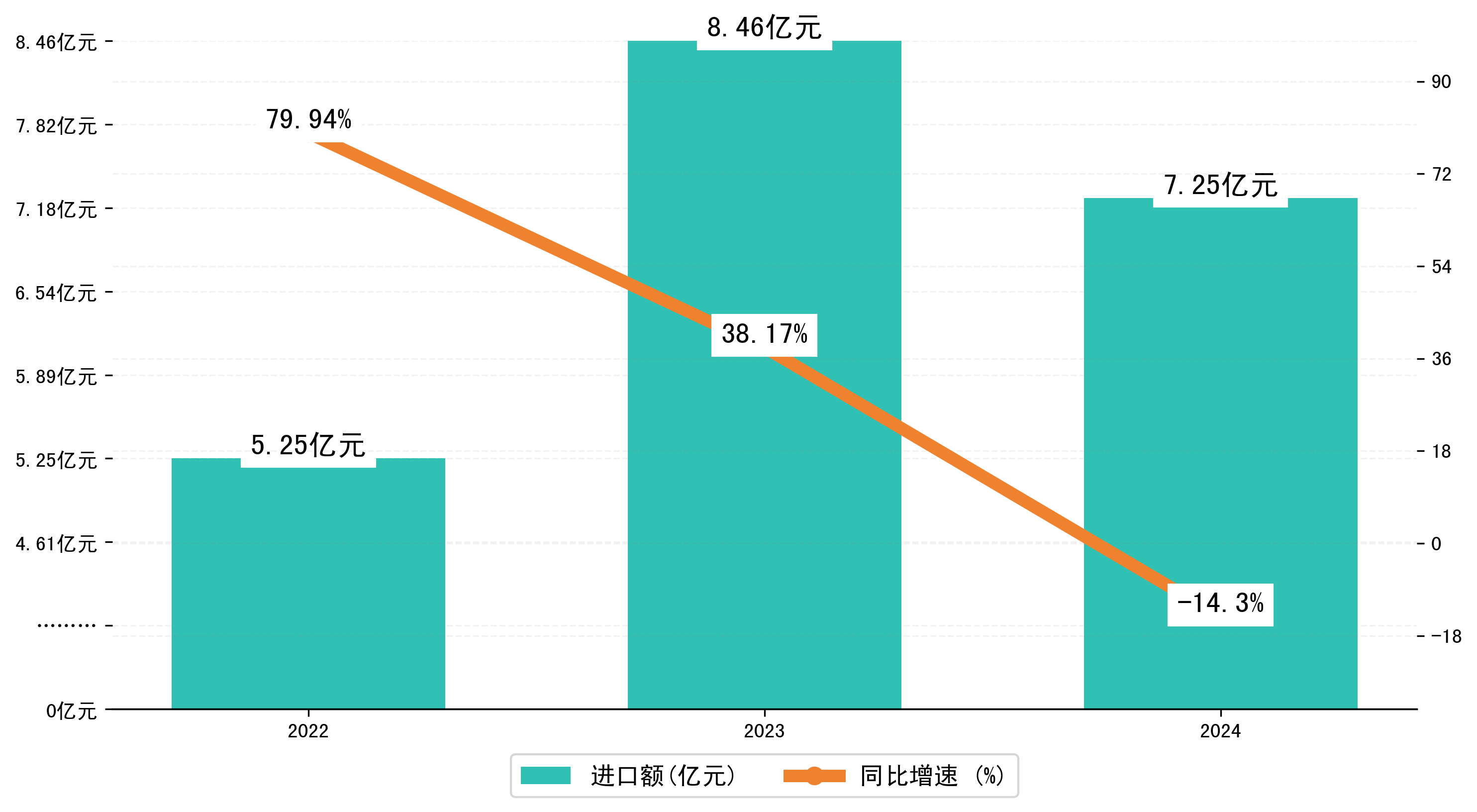 以人民币计,2024年1-2月上饶市进口额为7,2535.5375万元,相比上年同期减少了1,2106.5848万元,同比增加了3.60%。