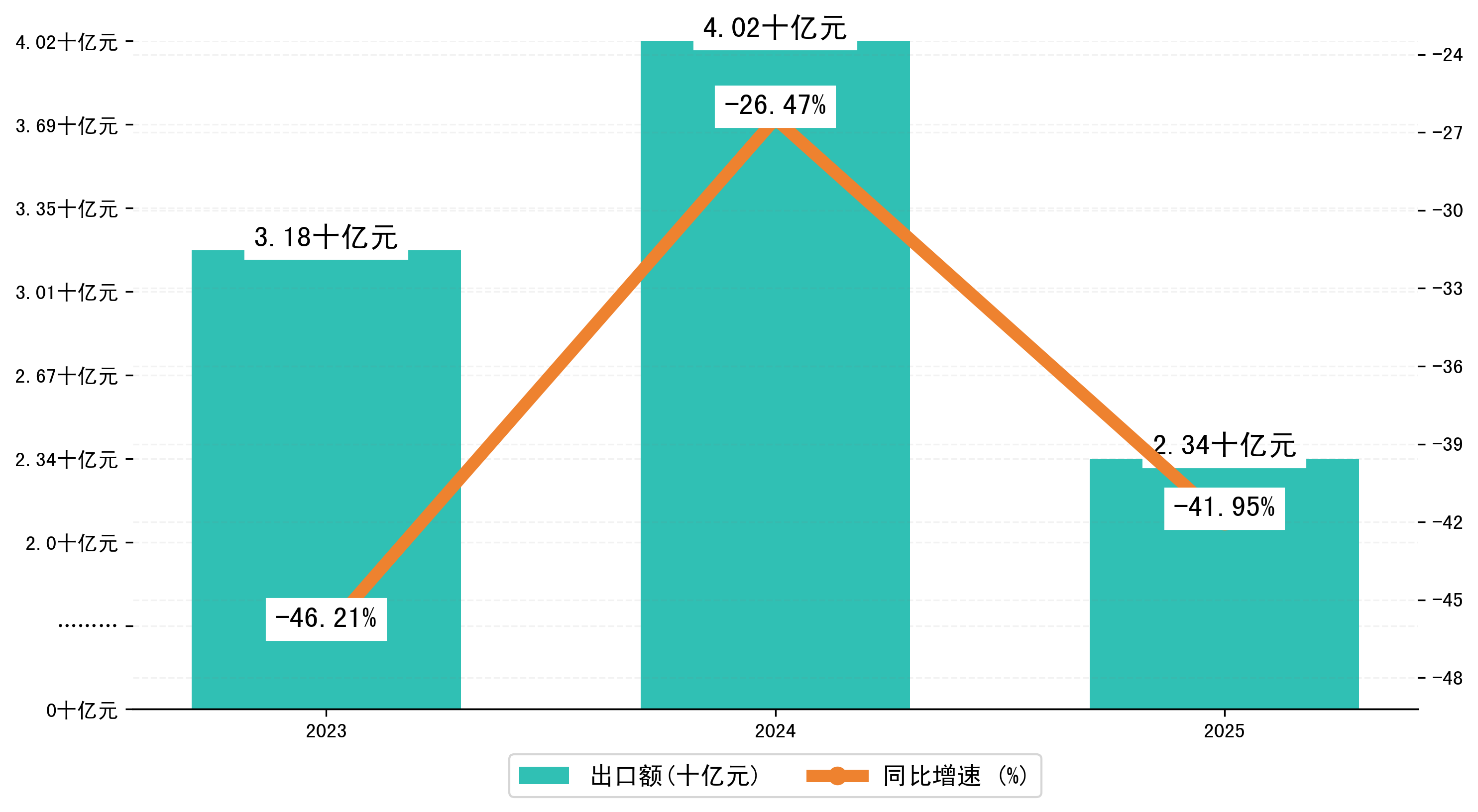 以人民币计,2025年1-1月上饶市出口额为23,3516.1171万元,相比上年同期减少了16,8738.3215万元,同比减少了-41.90%。