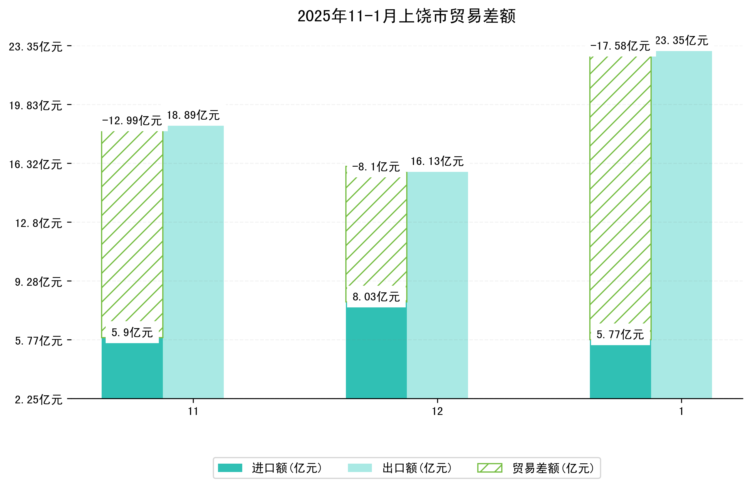 2025年1月上饶市进出口总额及进出口差额统计分析