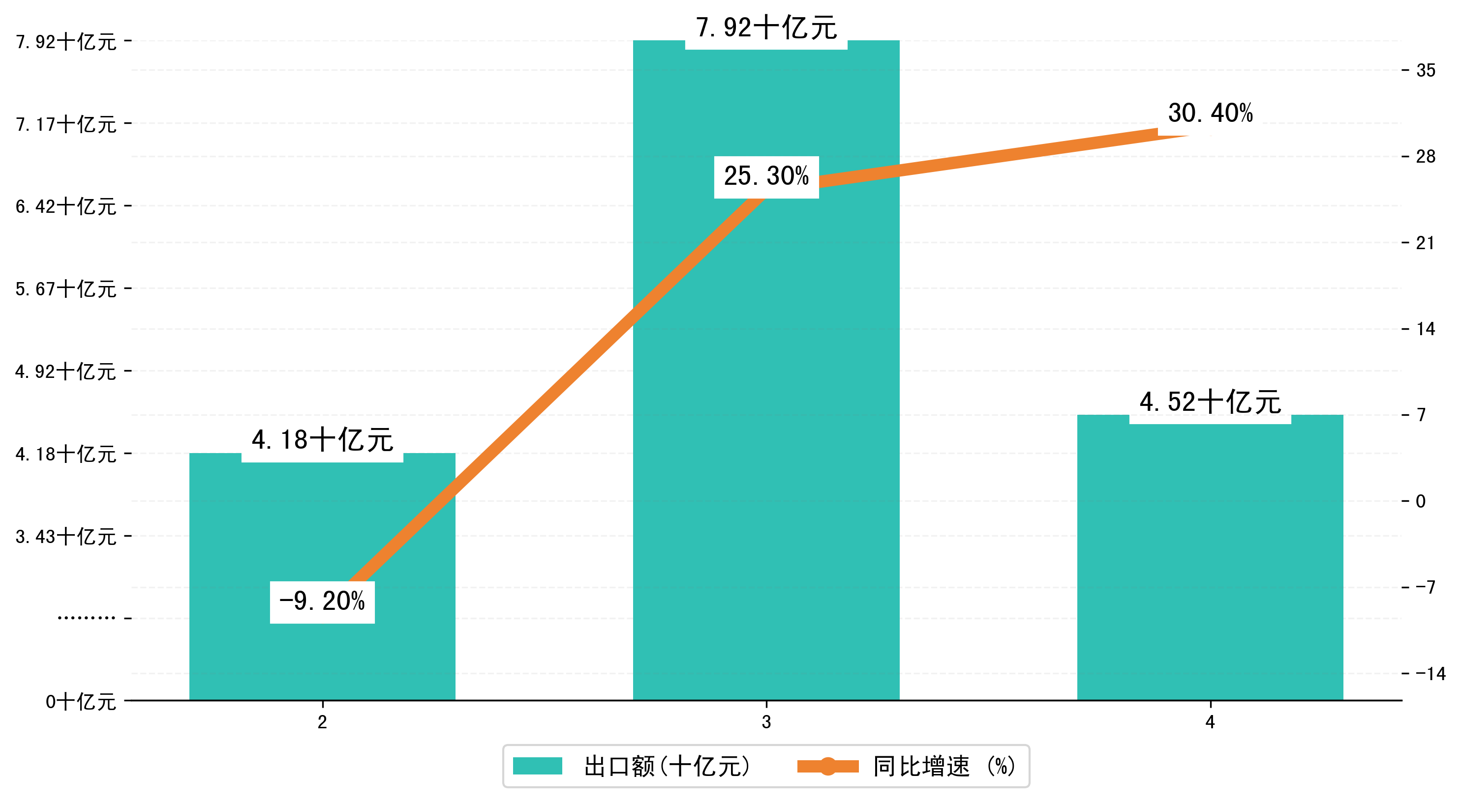 以美元计,2023年1-4月上饶市出口额为28,9321.7975万美元,相比上年同期增加了5,0873.0753万美元,同比增加21.40%。
