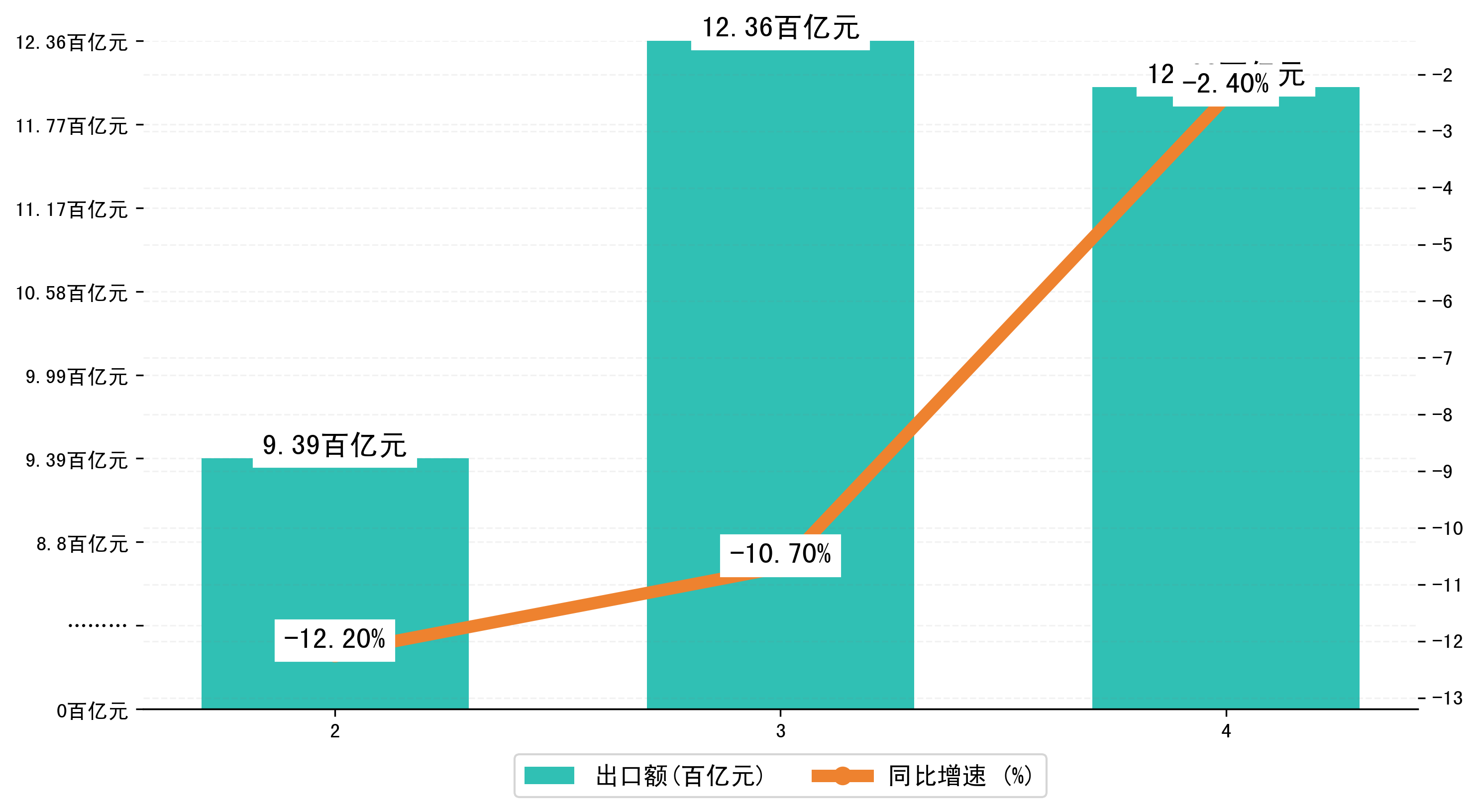 以美元计,2023年1-4月苏州市出口额为662,9025.041万美元,相比上年同期减少了69,1398.8216万美元,同比减少-9.50%。