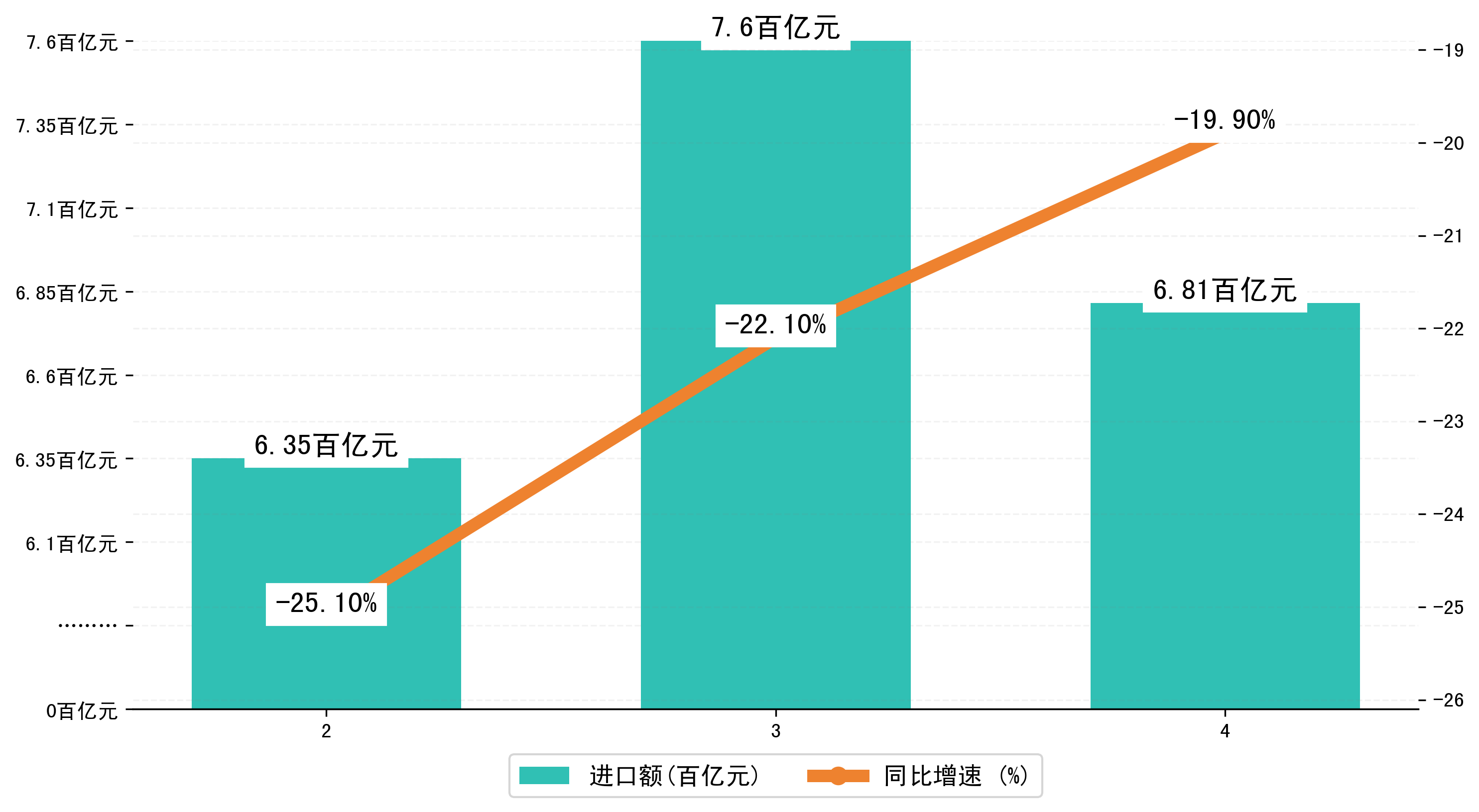 以人民币计,2023年1-4月苏州市进口额为2745,5574.094万元,相比上年同期减少了670,6876.1703万元,同比减少了-19.90%。