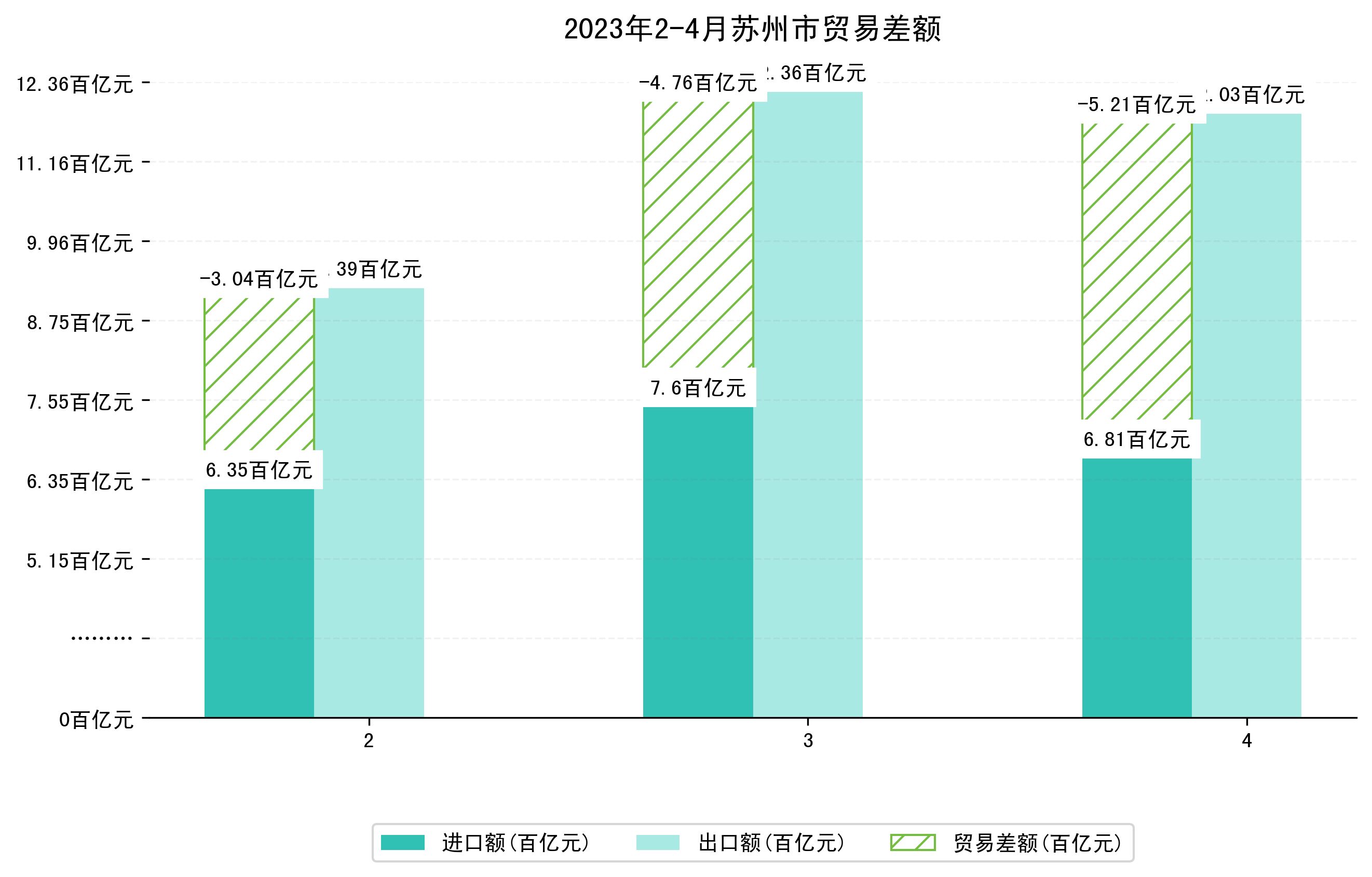 一、2023年4月苏州市单月出口总额及进出口差额统计分析