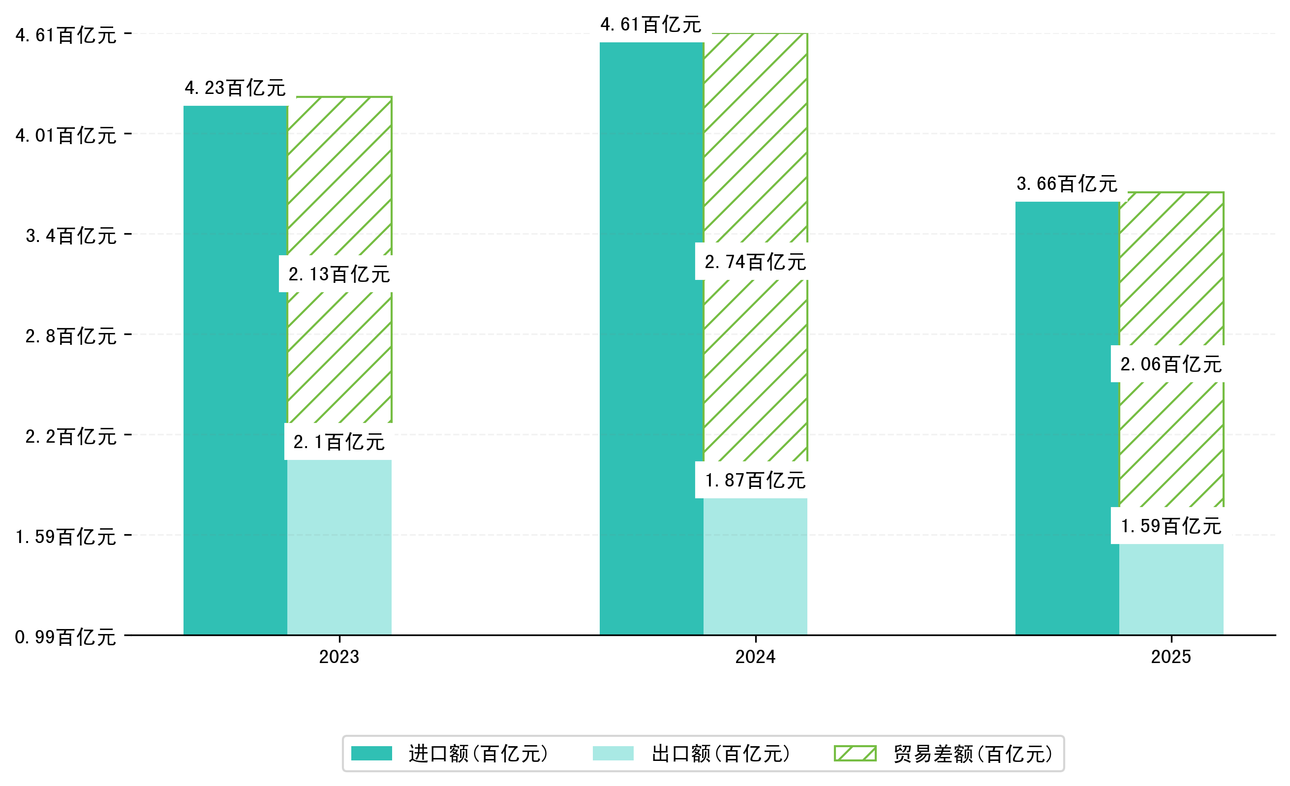 以美元计,2025年1-5月唐山市贸易差额为28,6994,9701万美元(贸易逆差),相比上年同期增加了9,8986,2444万美元,同比增加-25.65%。