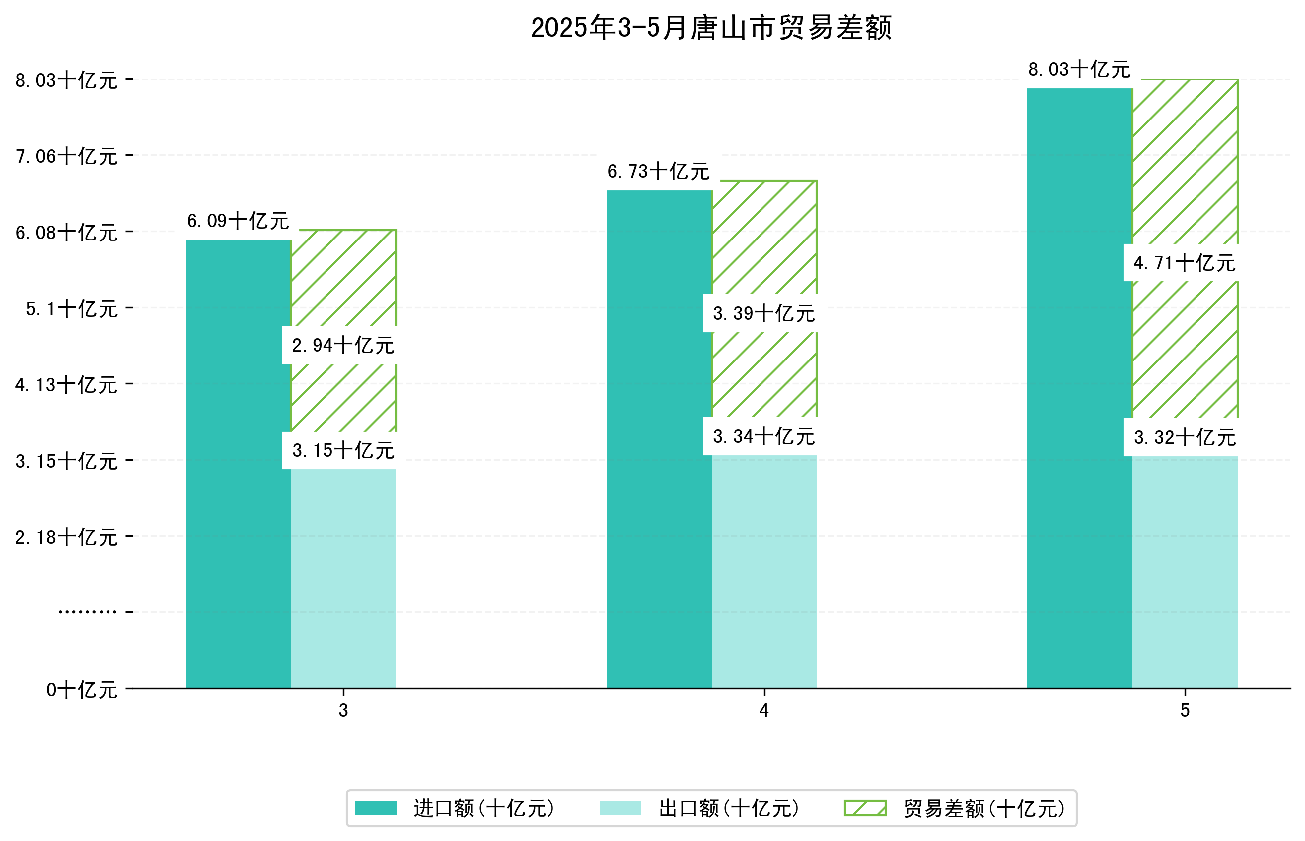 (图一:2025年3-5月唐山市进出口总额)