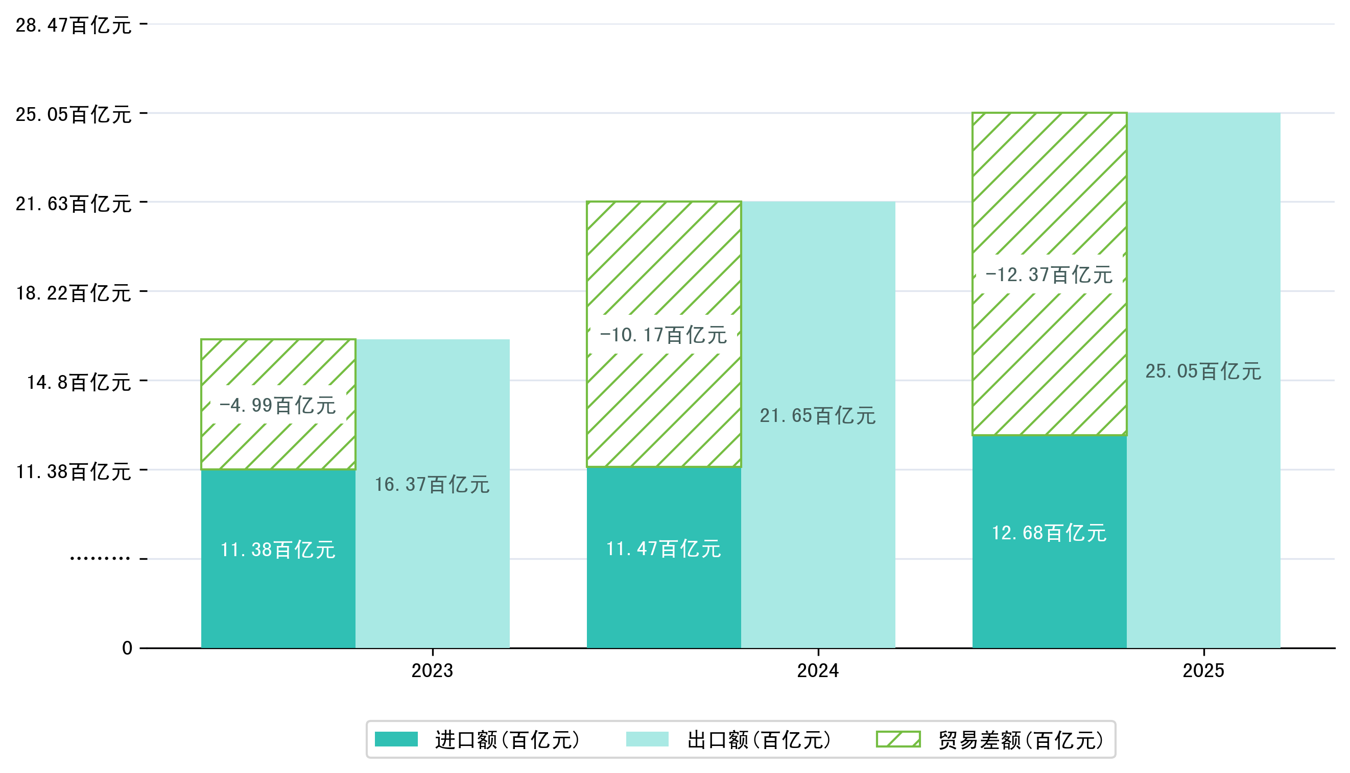 以美元计,2025年1-10月武汉市贸易差额为172,4731,4562万美元(贸易顺差),相比上年同期增加了29,4452,5814万美元,同比增加20.59%。