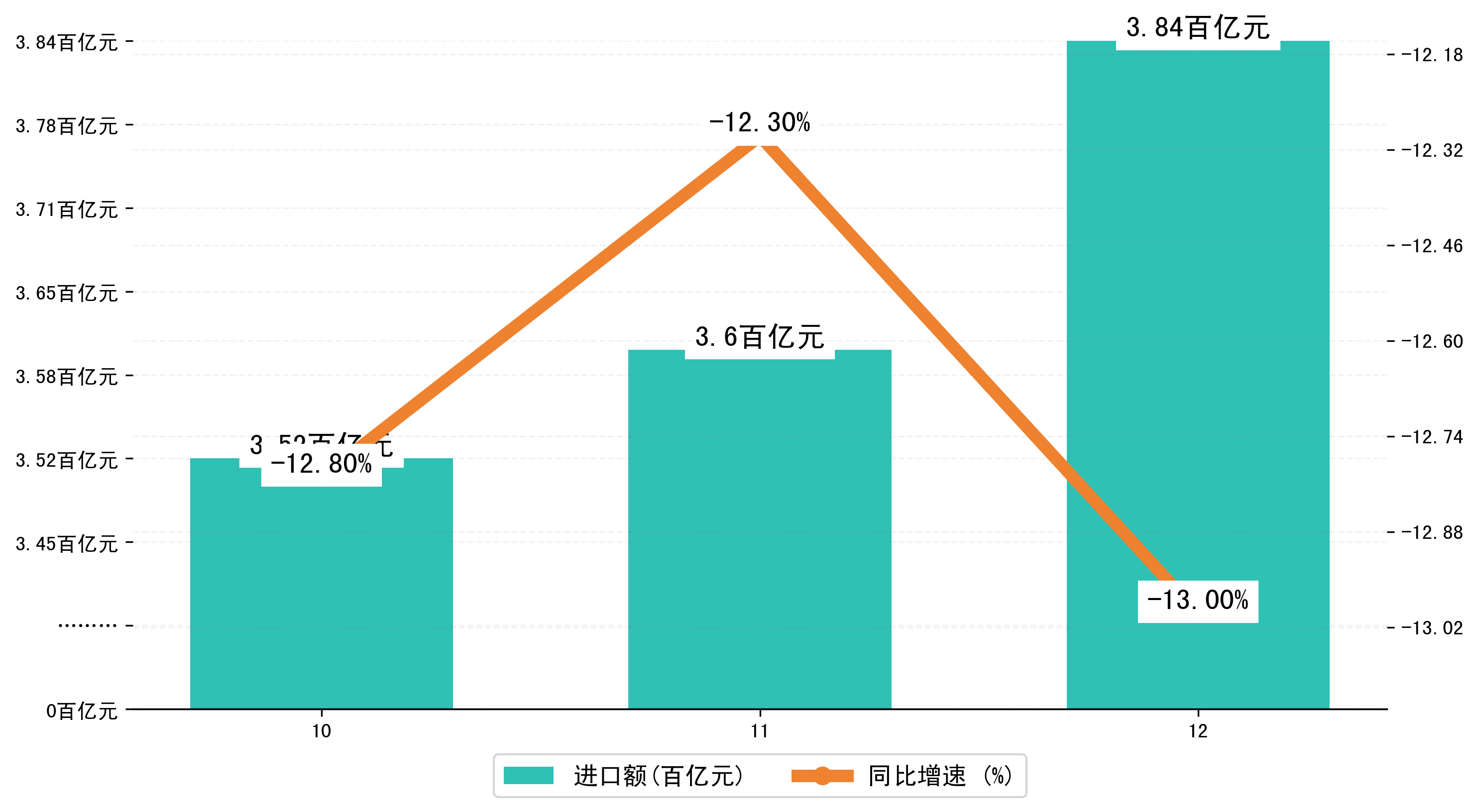 以人民币计,2024年12月厦门市进口额为384,3461.6134万元,相比上月增加了23,9679.6482万元;相比上年同期减少了64,7001.5498万元,同比减少了-13.00%。
