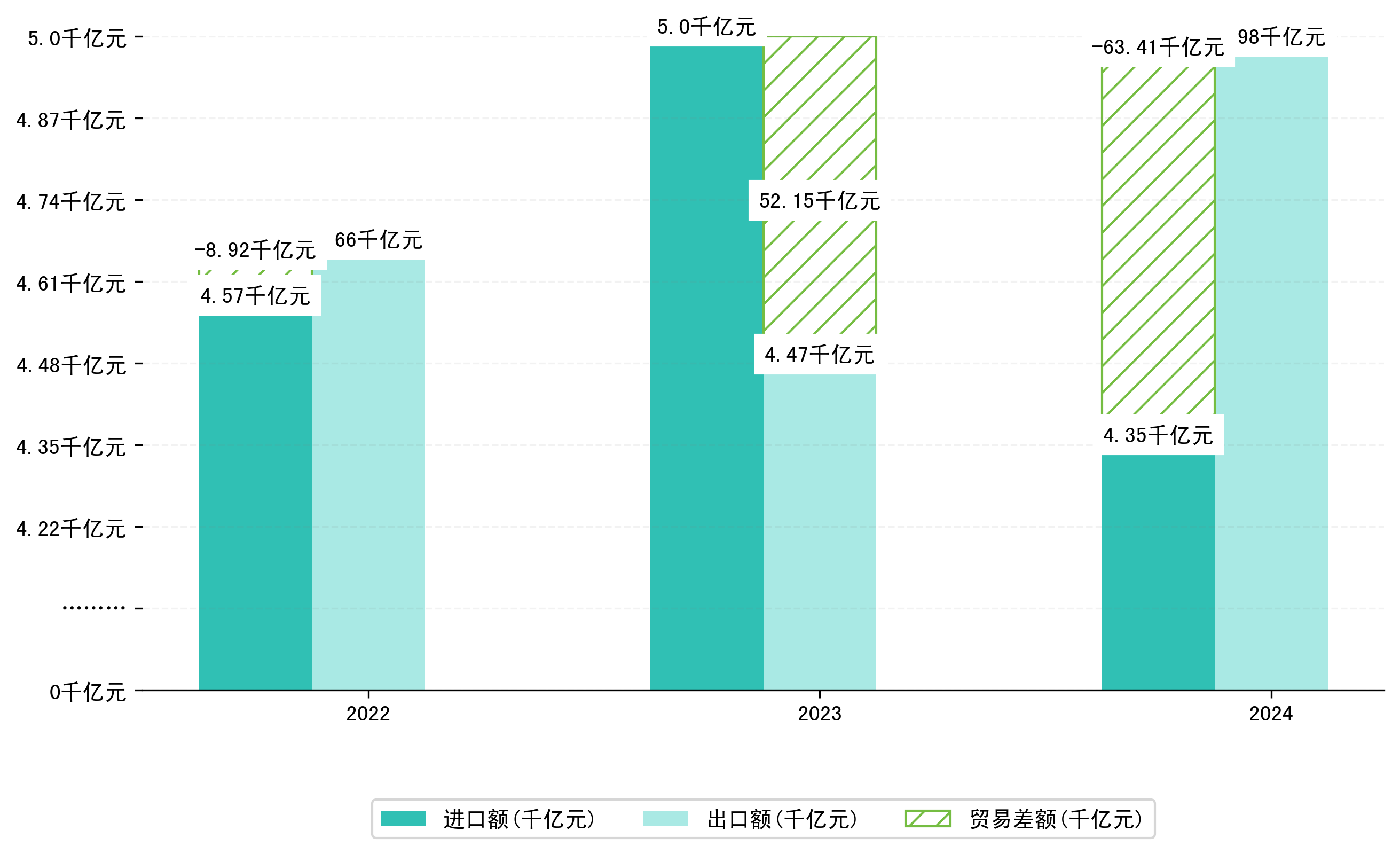 以美元计,2024年1-12月厦门市贸易差额为88,9876,6880万美元(贸易顺差),相比上年同期增加了163,9113,9442万美元,同比增加-218.77%。