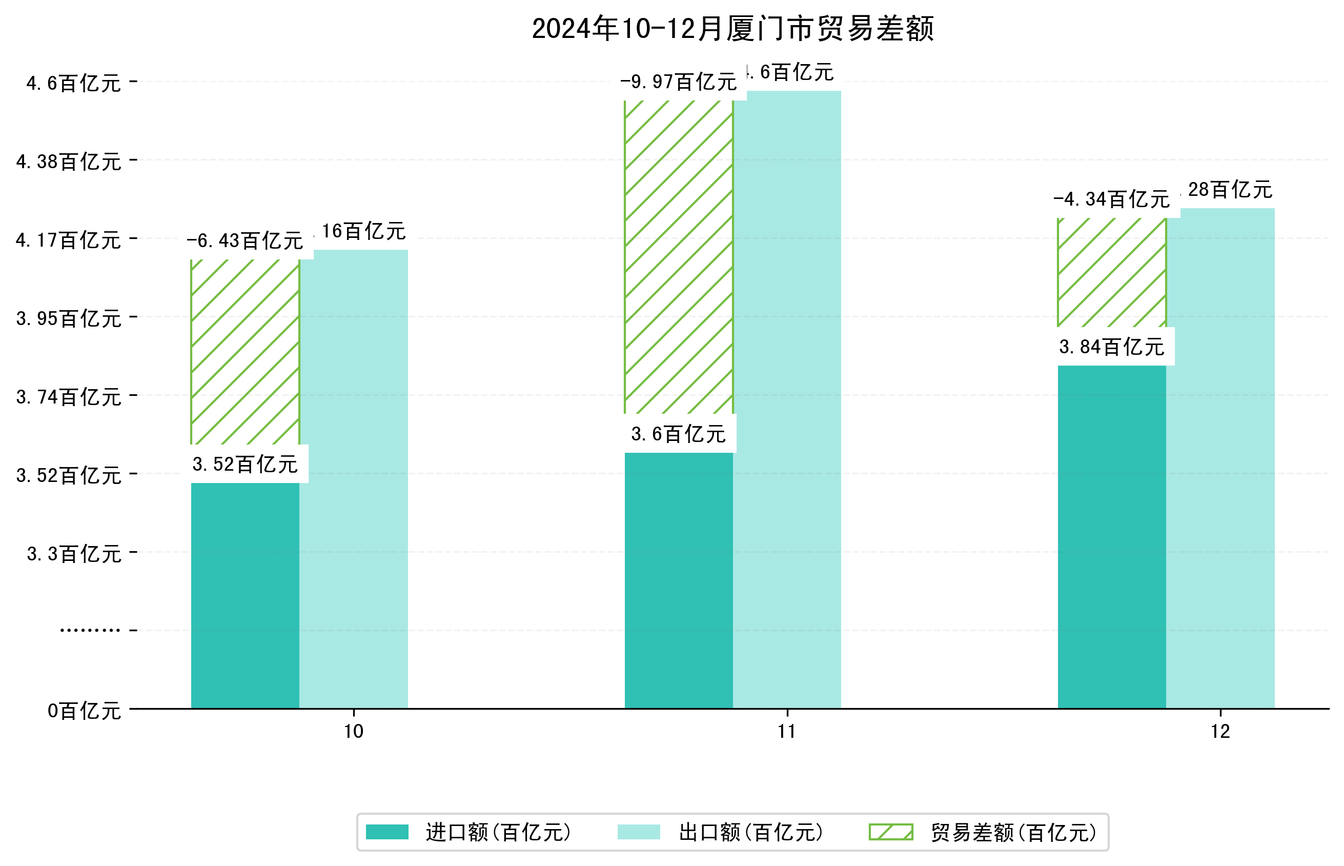 2024年12月厦门市进出口总额及进出口差额统计分析