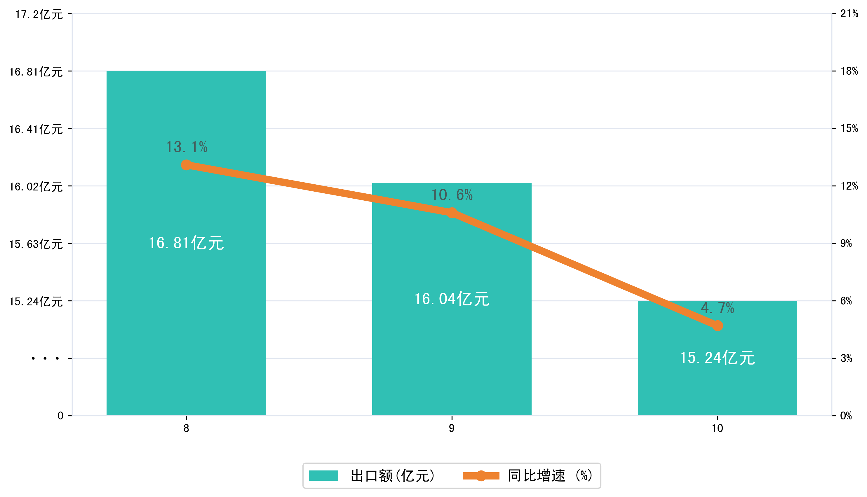(图二:2025年8-10月襄阳市出口额)
