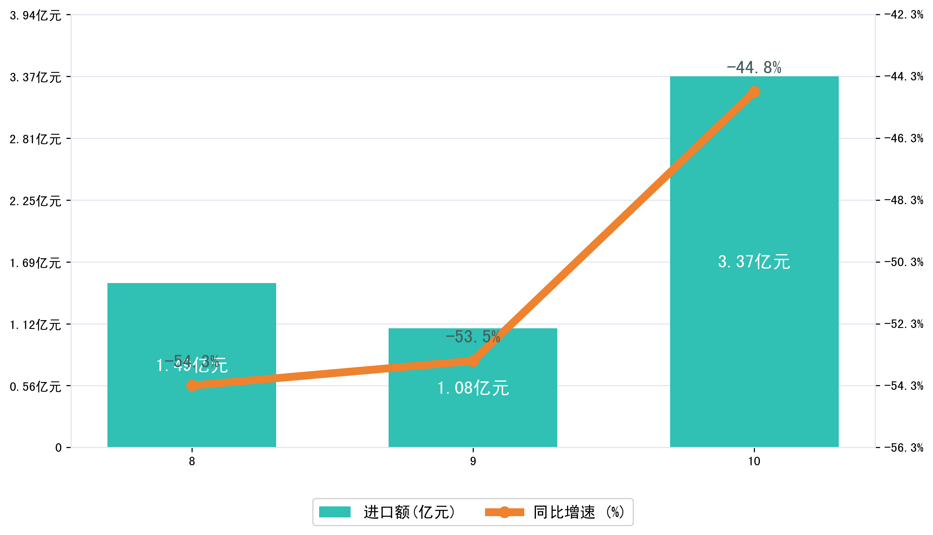 (图三:2025年8-10月襄阳市进口额)
