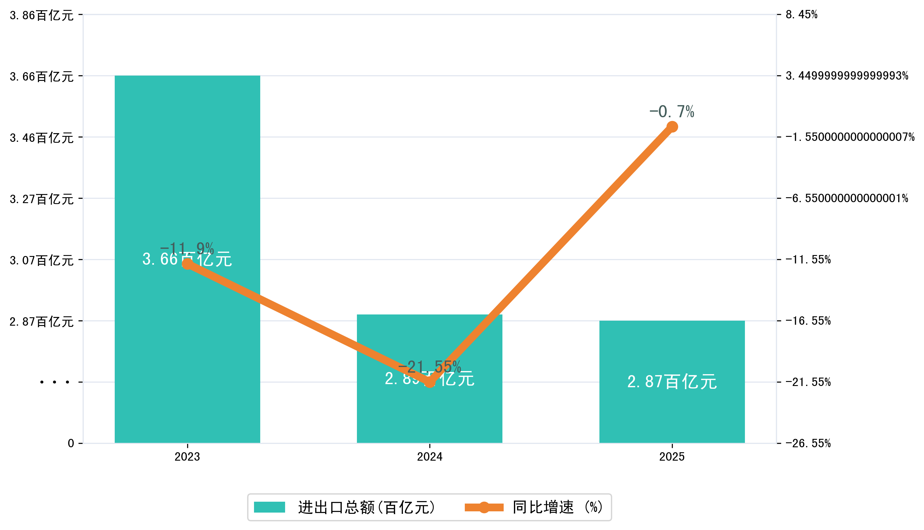 以人民币计,2025年1-10月襄阳市进出口总额为287,2304.9493万元,相比上年同期减少了2,0118.4517万元,同比减少了-0.60%。