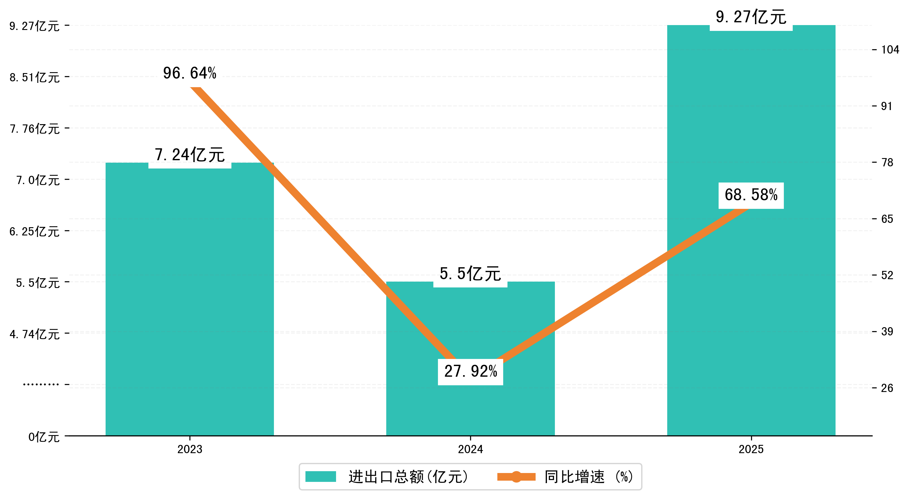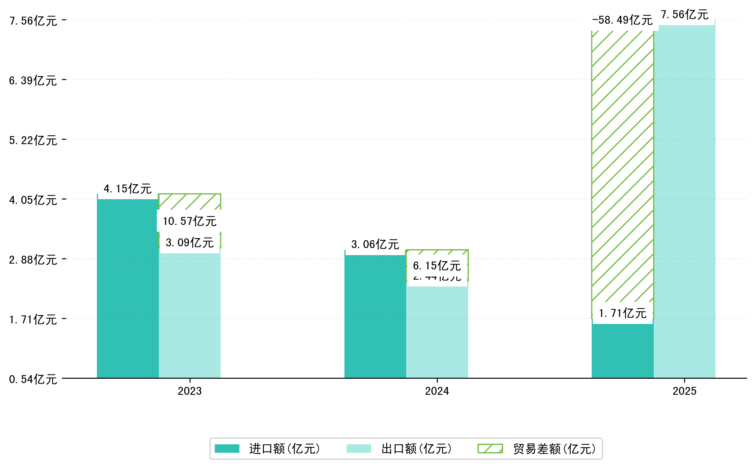 以人民币计,2025年1-2月西宁市贸易差额为5,8490,6355万元(贸易顺差),相比上年同期增加了6,4636,0958万元,同比增加-1051.77%。