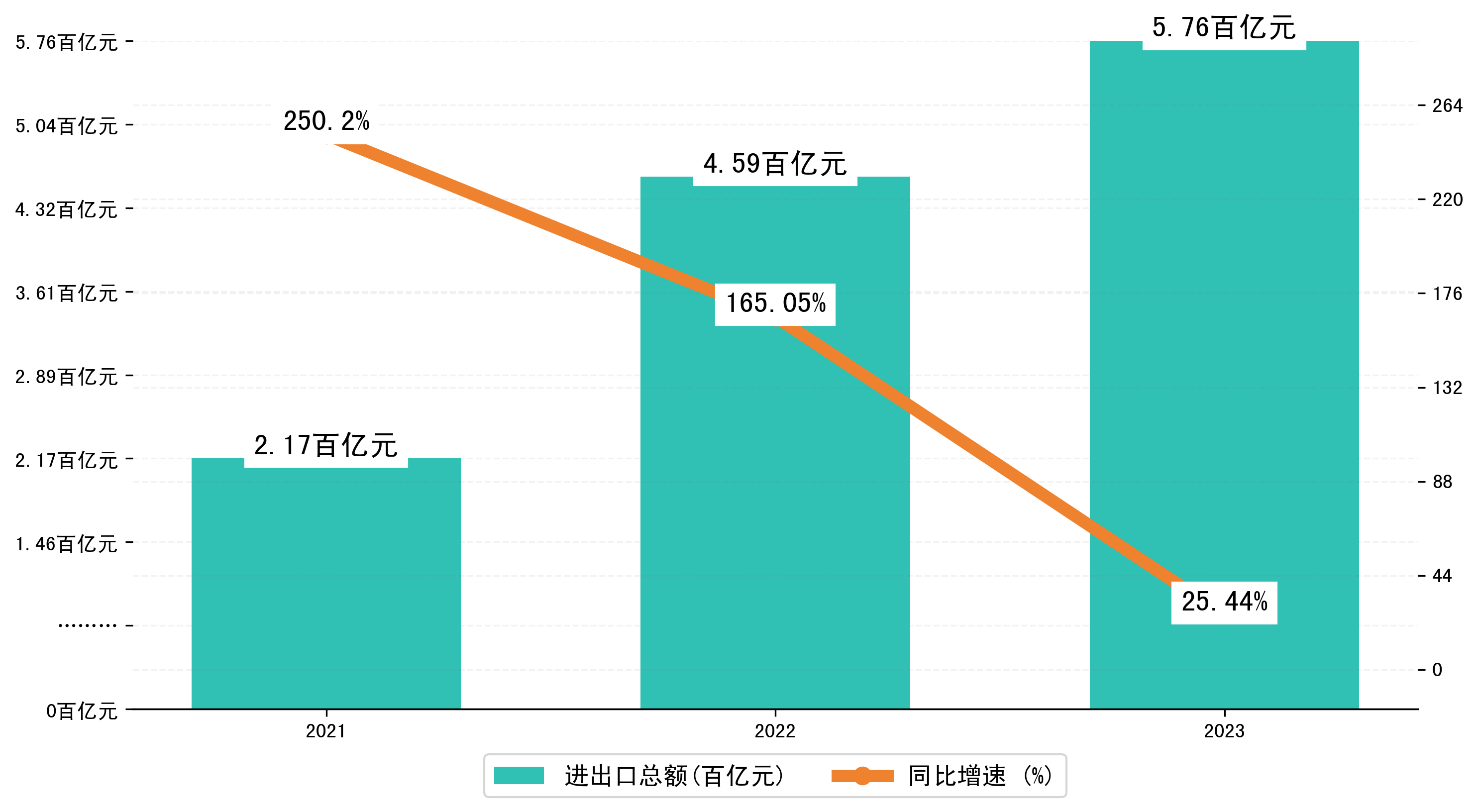 以人民币计,2023年1-12月新余市进出口总额为575,8400.8565万元,相比上年同期增加了116,7721.4624万元,同比增加了22.60%。