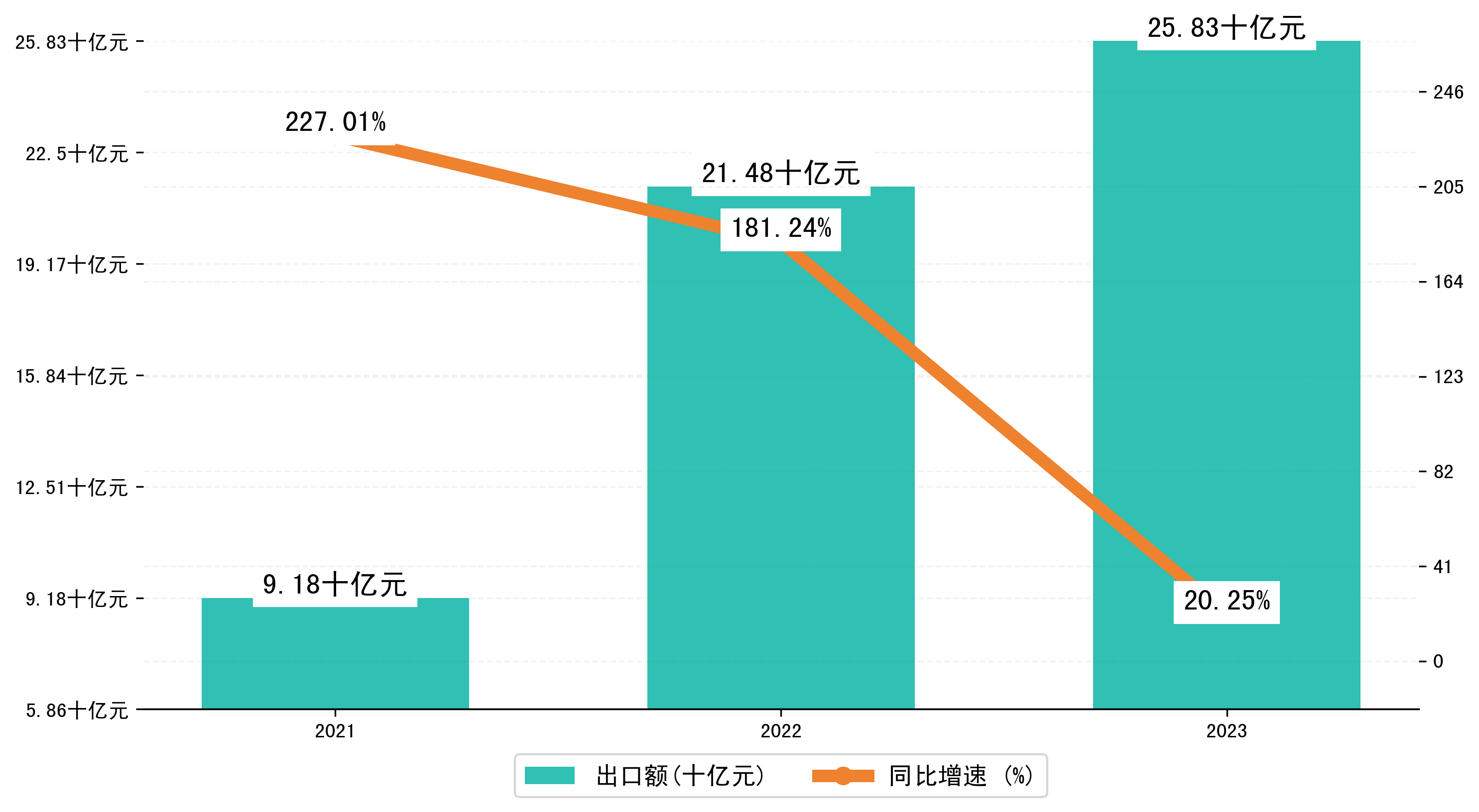 以人民币计,2023年1-12月新余市出口额为258,3088.6782万元,相比上年同期增加了43,5064.8781万元,同比增加了20.30%。