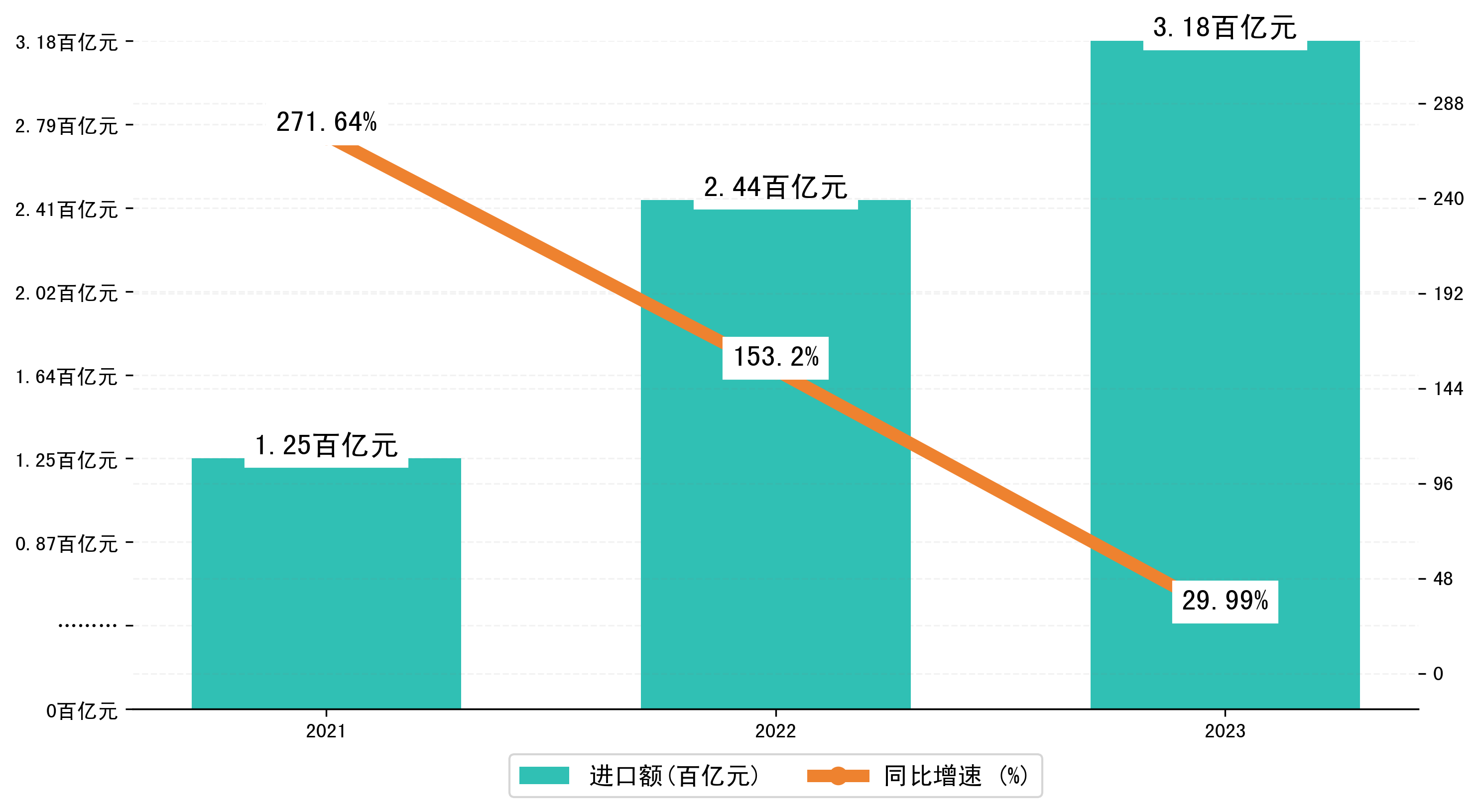 以人民币计,2023年1-12月新余市进口额为317,5312.1782万元,相比上年同期增加了73,2656.5842万元,同比增加了24.60%。