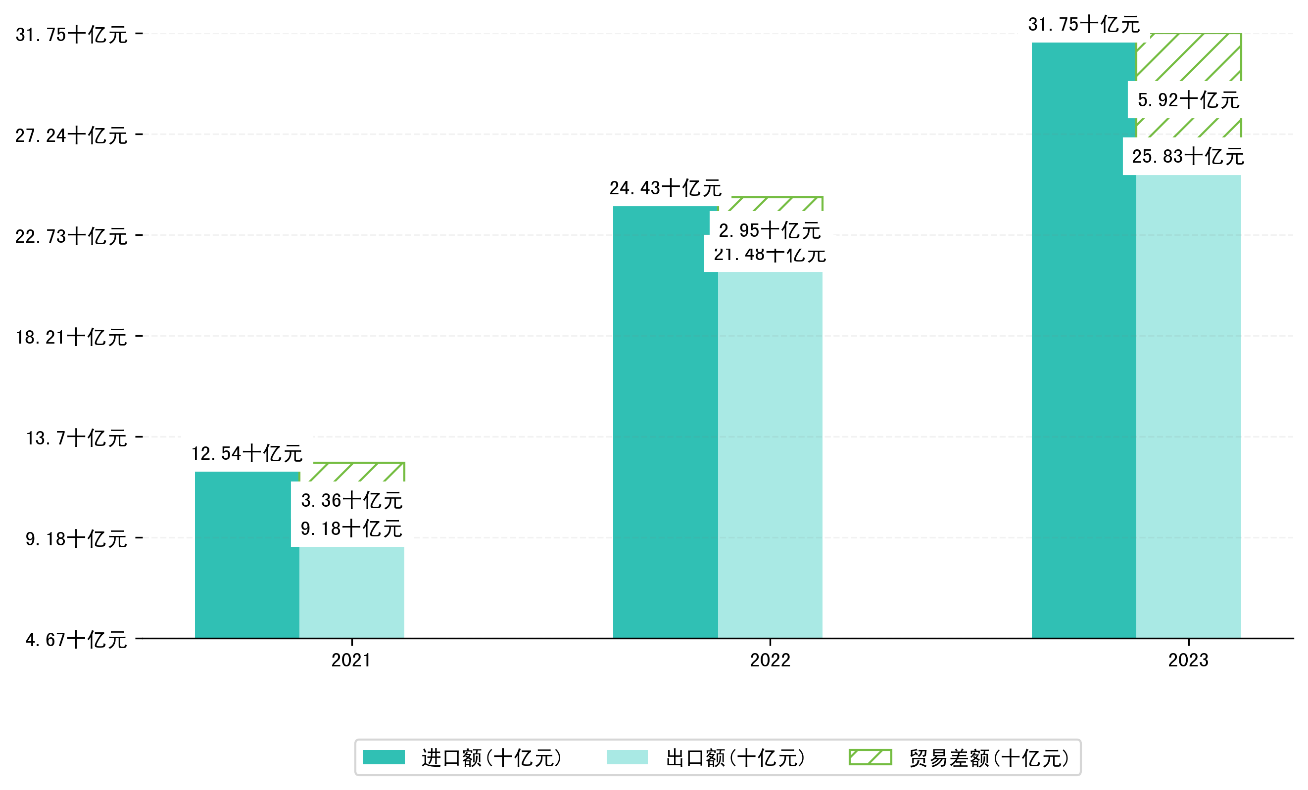 以美元计,2023年1-12月新余市贸易差额为8,5886,3293万美元(贸易逆差),相比上年同期减少了3,9688,3918万美元,同比减少85.91%。