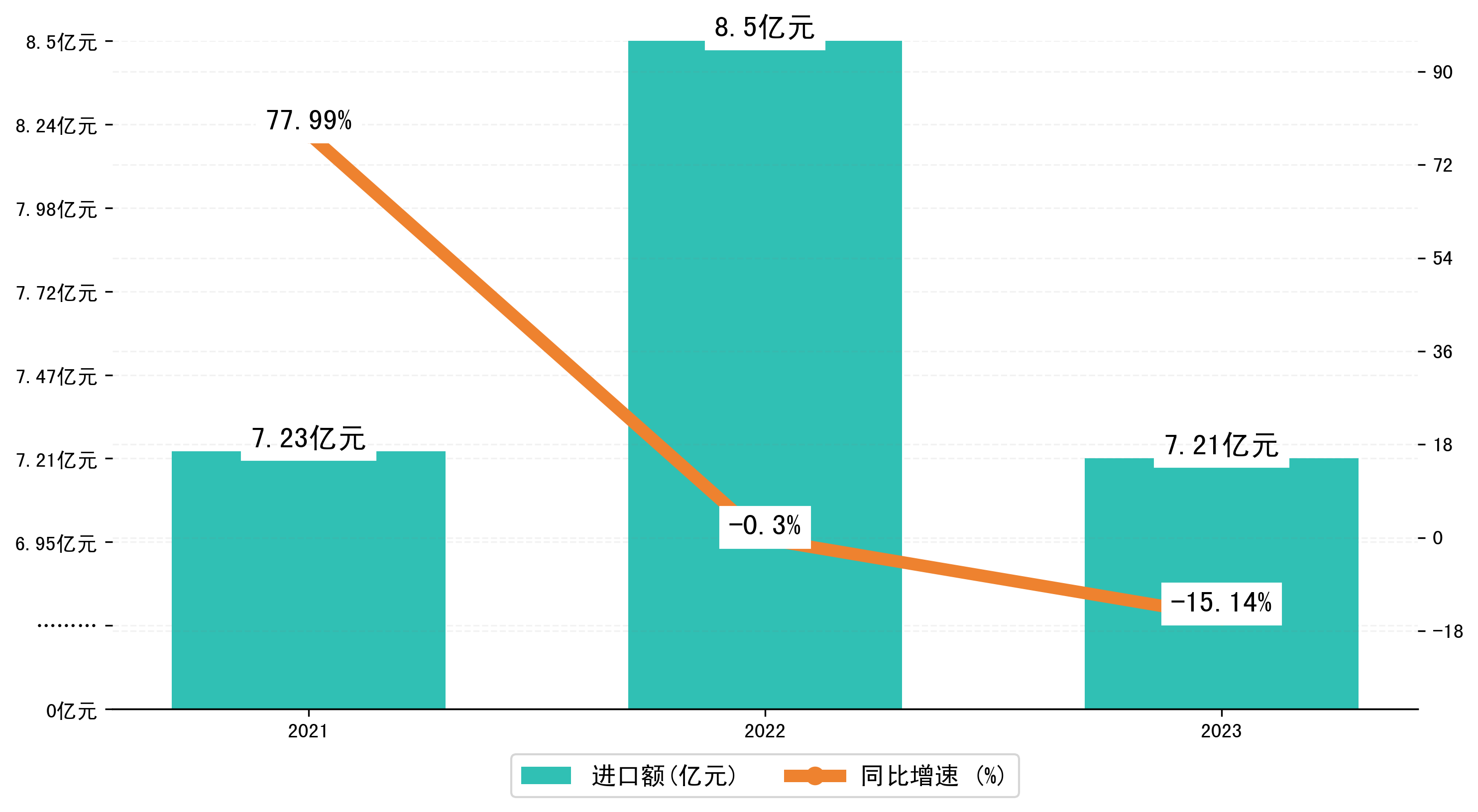 以人民币计,2023年1-6月宣城市进口额为7,2092.3792万元,相比上年同期减少了1,2866.7561万元,同比减少了-15.20%。