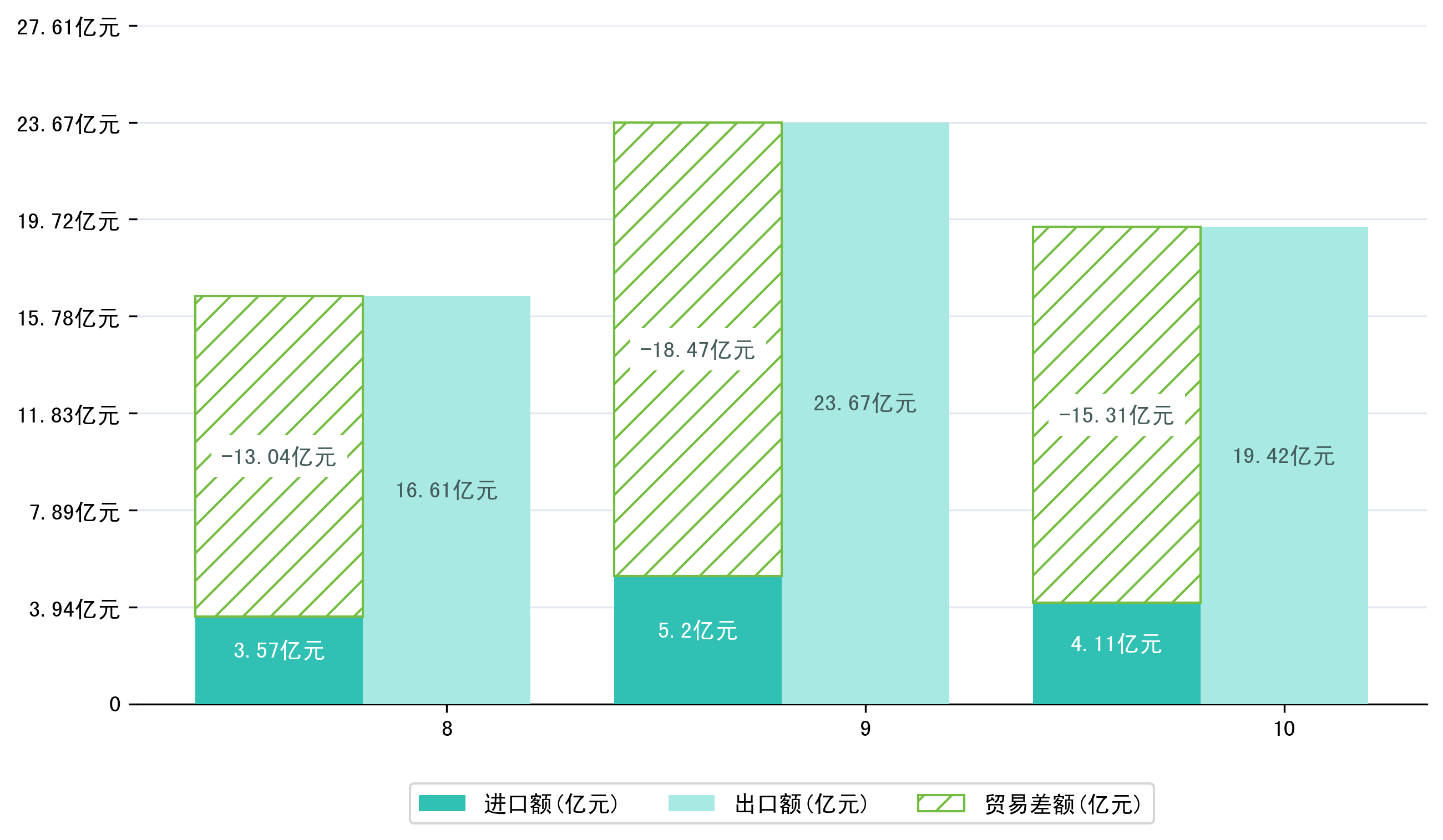 2025年10月宜宾市进出口总额及进出口差额统计分析