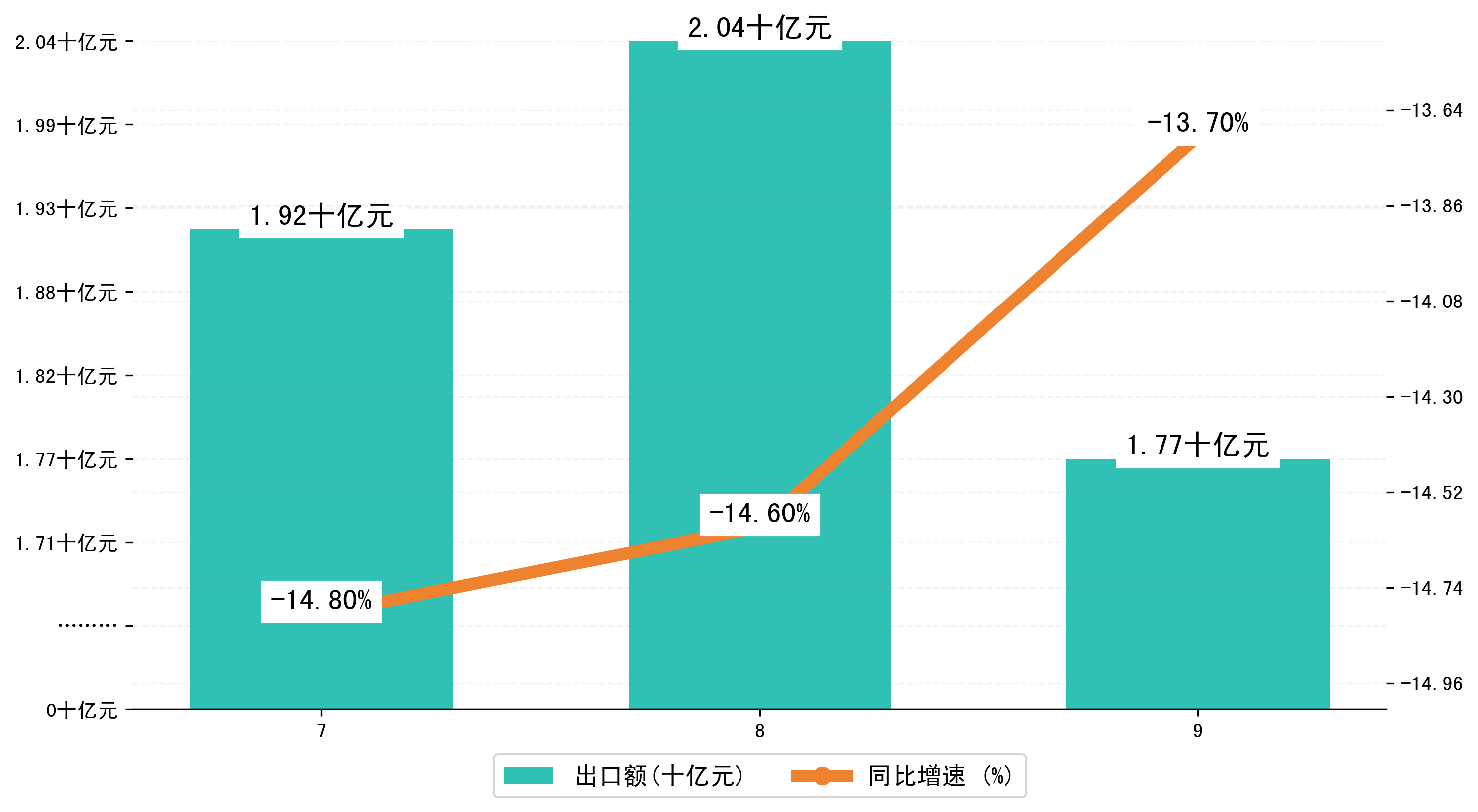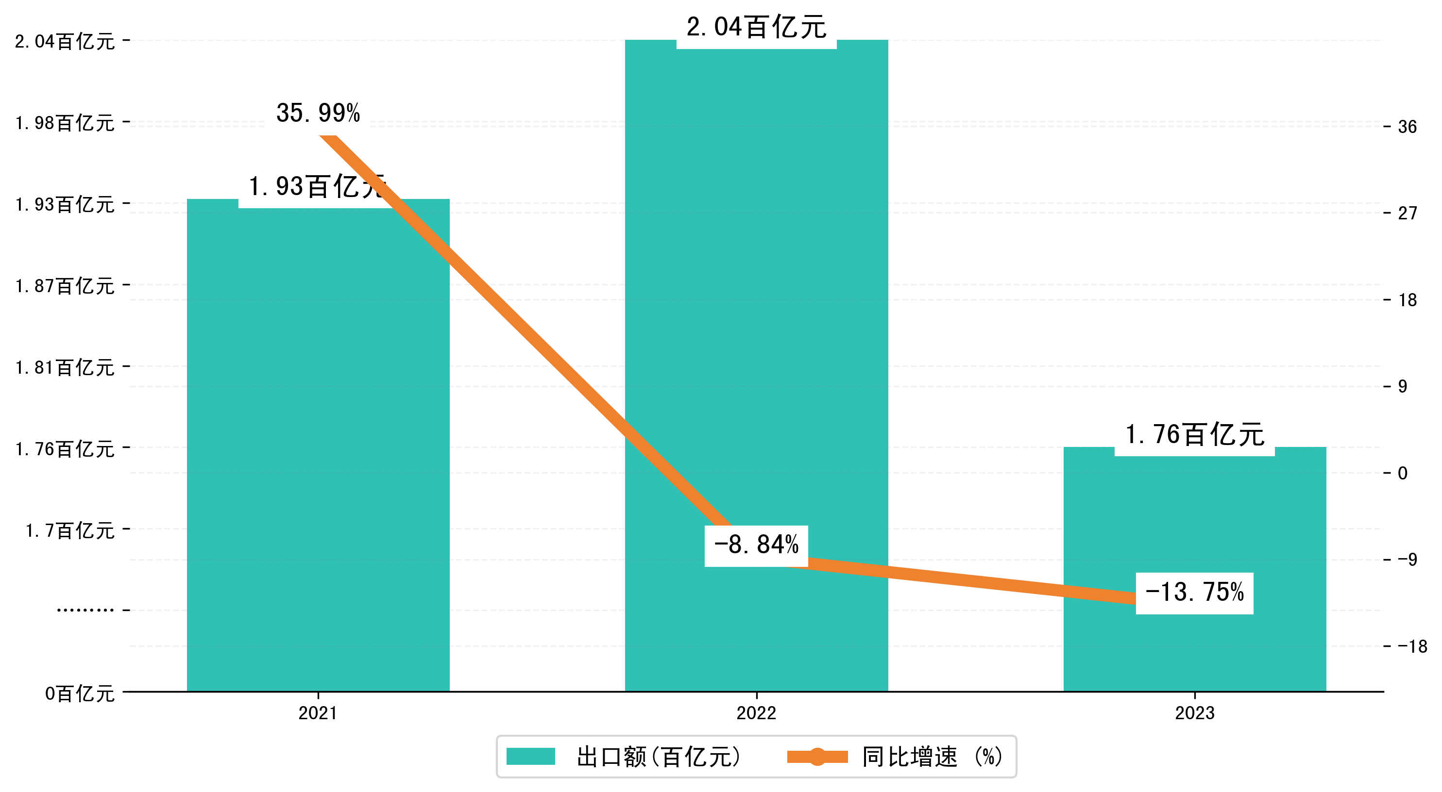 以人民币计,2023年1-9月营口市出口额为175,8787.7757万元,相比上年同期减少了28,0354.5863万元,同比减少了-13.70%。