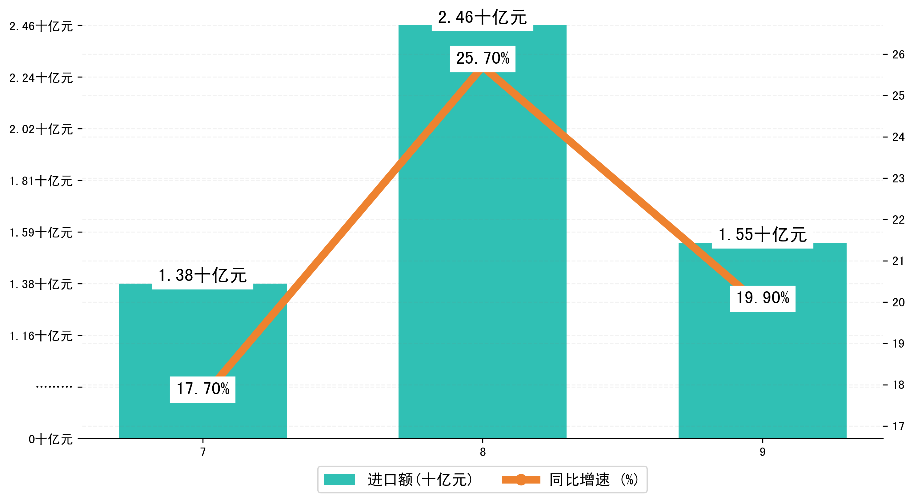 以人民币计,2023年1-9月营口市进口额为182,2012.2741万元,相比上年同期增加了28,4088.2779万元,同比增加了19.90%。