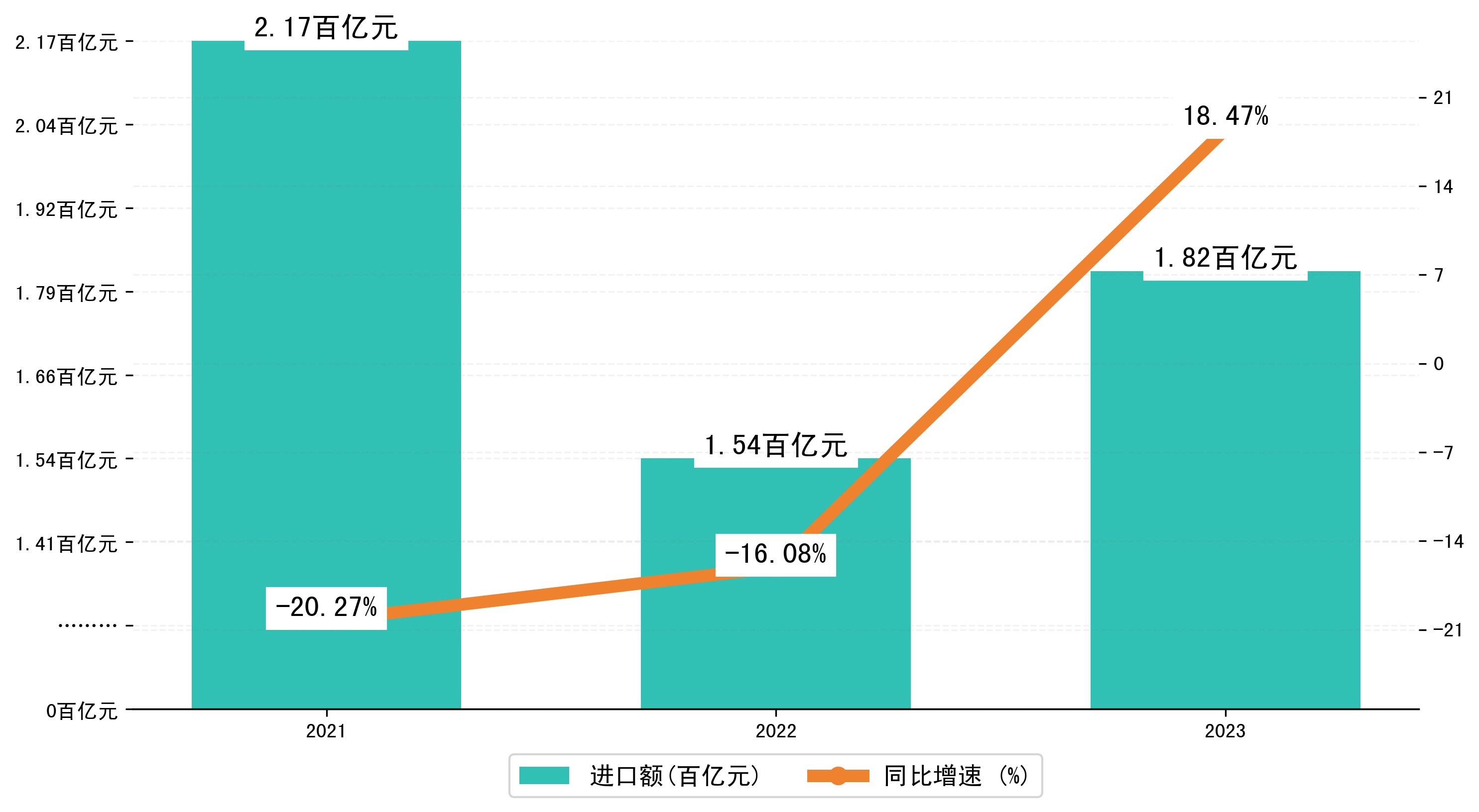 以美元计,2023年1-9月营口市进口额为26,1054.9403万美元,相比上年同期增加了2,4854.6343万美元,同比增加11.80%。