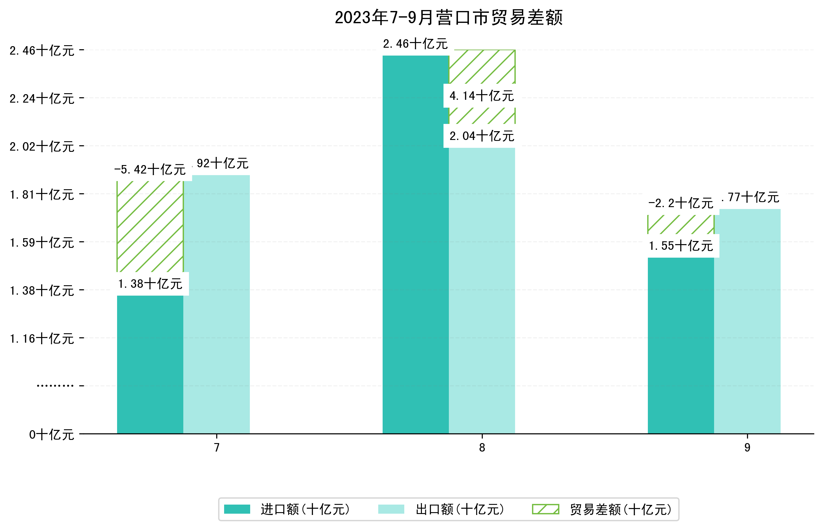 一、2023年9月营口市单月出口总额及进出口差额统计分析