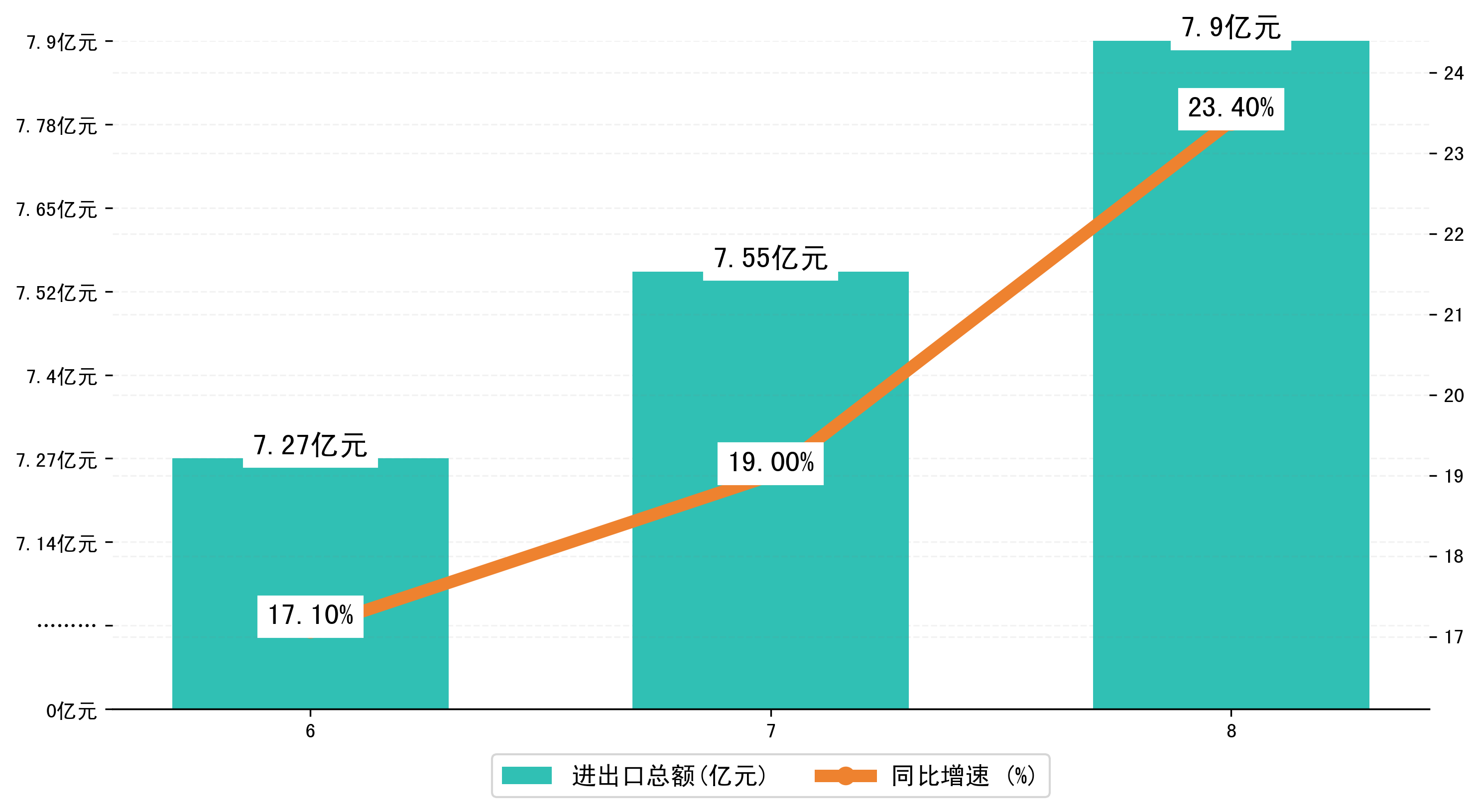 (图一:2025年6-8月益阳市进出口总额)