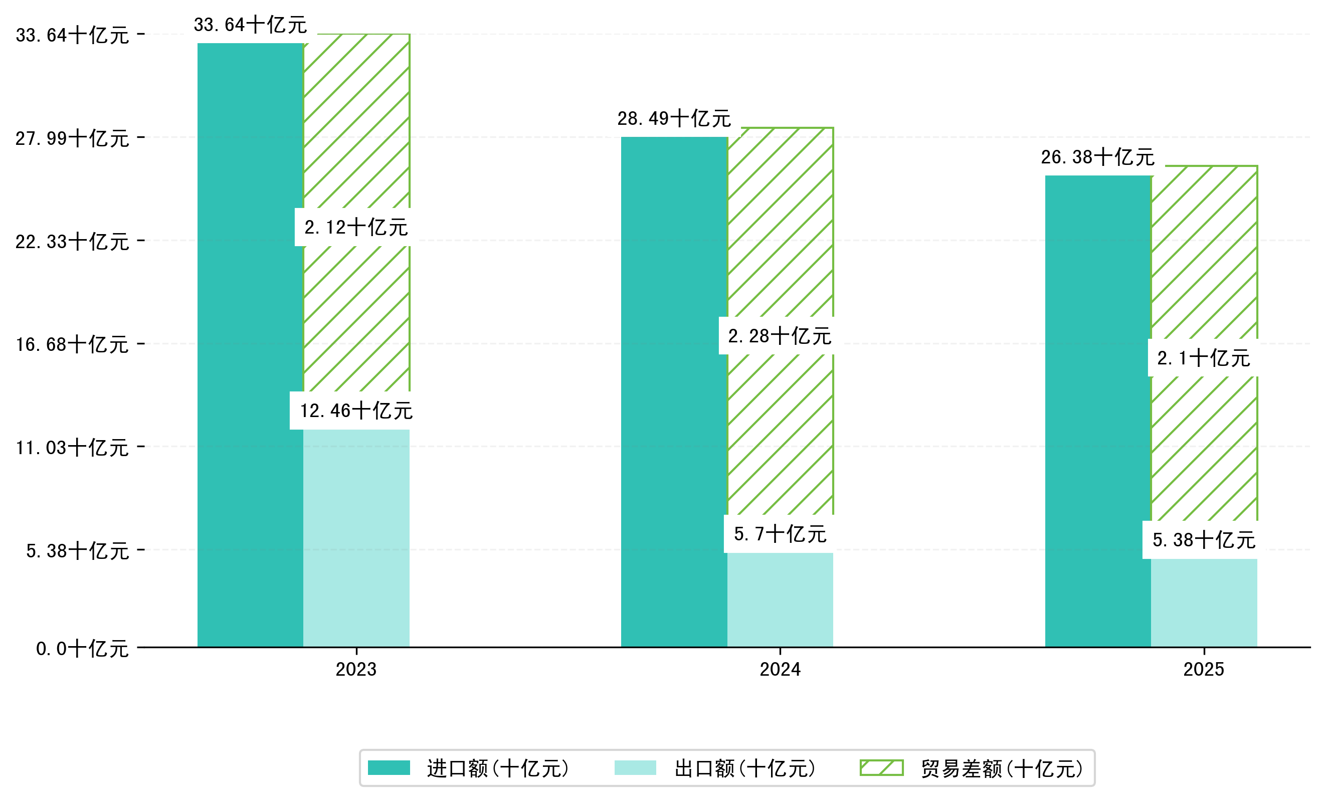 以人民币计,2025年1-8月岳阳市贸易差额为210,0541,5602万元(贸易逆差),相比上年同期增加了17,8653,2697万元,同比增加-7.84%。
