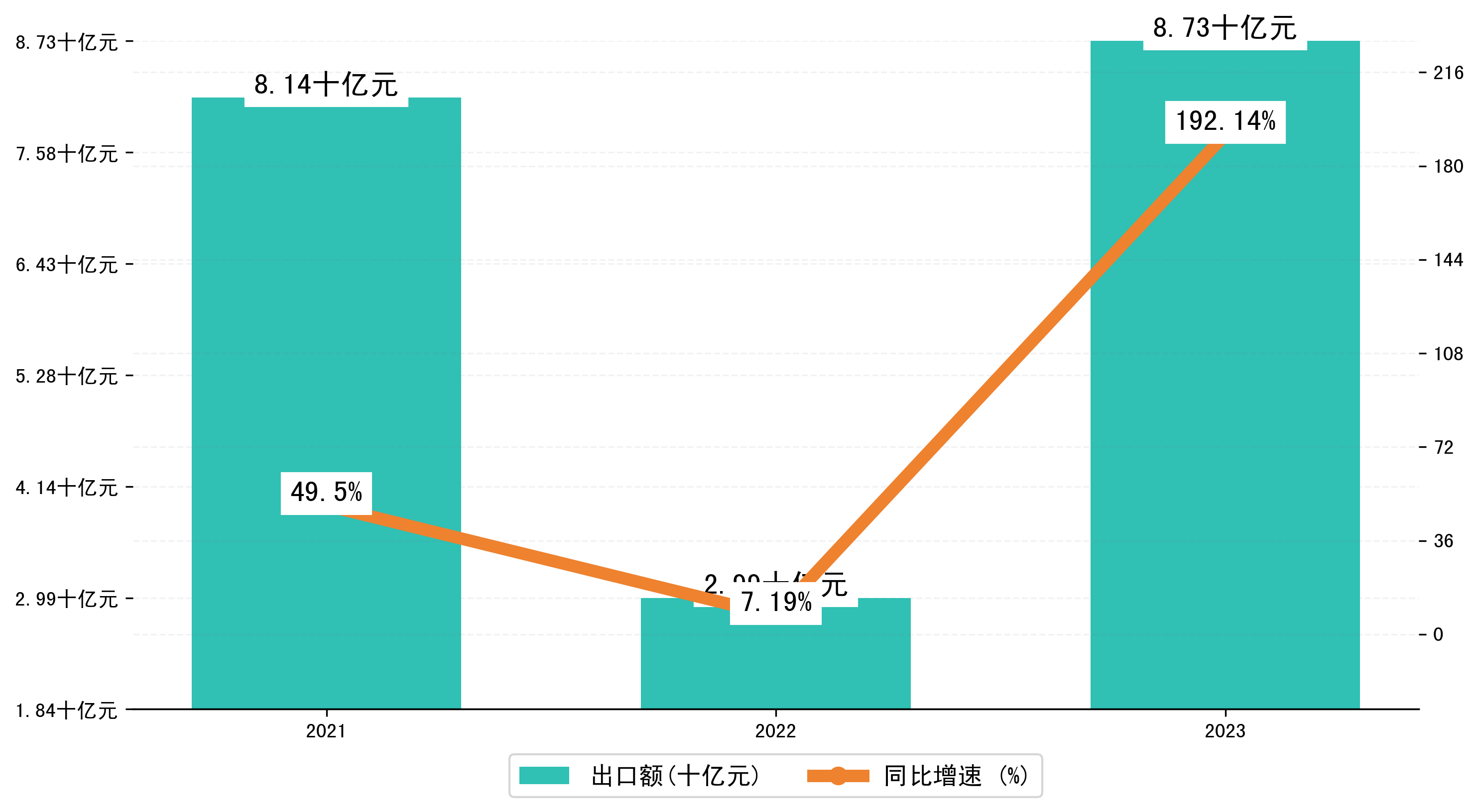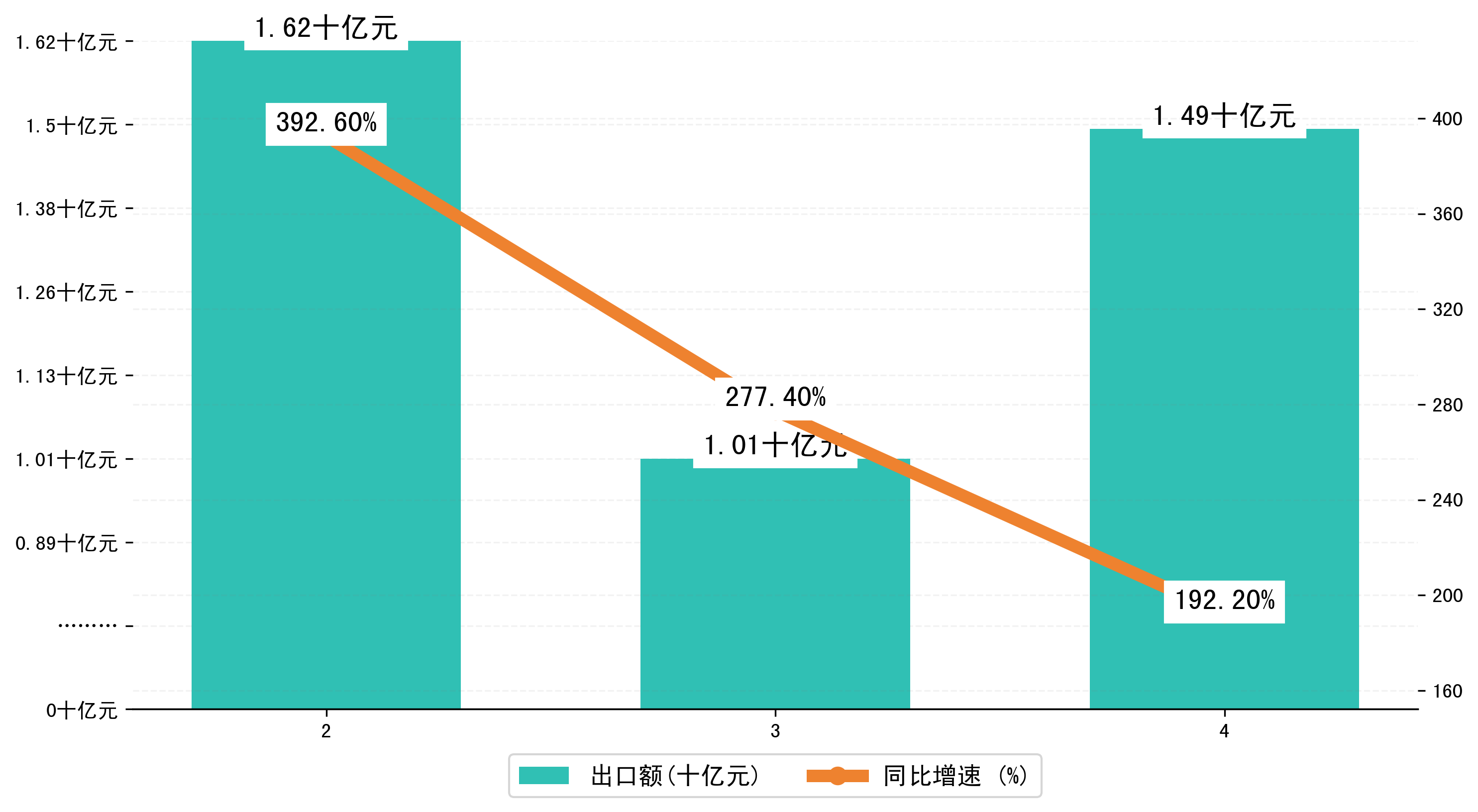 以美元计,2023年1-4月岳阳市出口额为12,6545.8231万美元,相比上年同期增加了7,9580.4439万美元,同比增加169.50%。