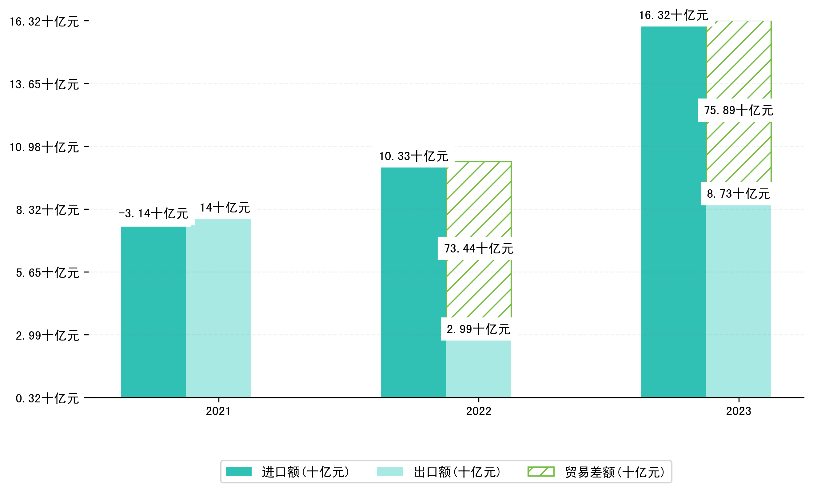 以人民币计,2023年4月岳阳市贸易差额为25,9450,4477万元(贸易逆差),相比上月增加了18,4075,2306万元,即2,6733,4530万美元;相比上年同期减少了6,5260,5354万元,同比减少33.61%。