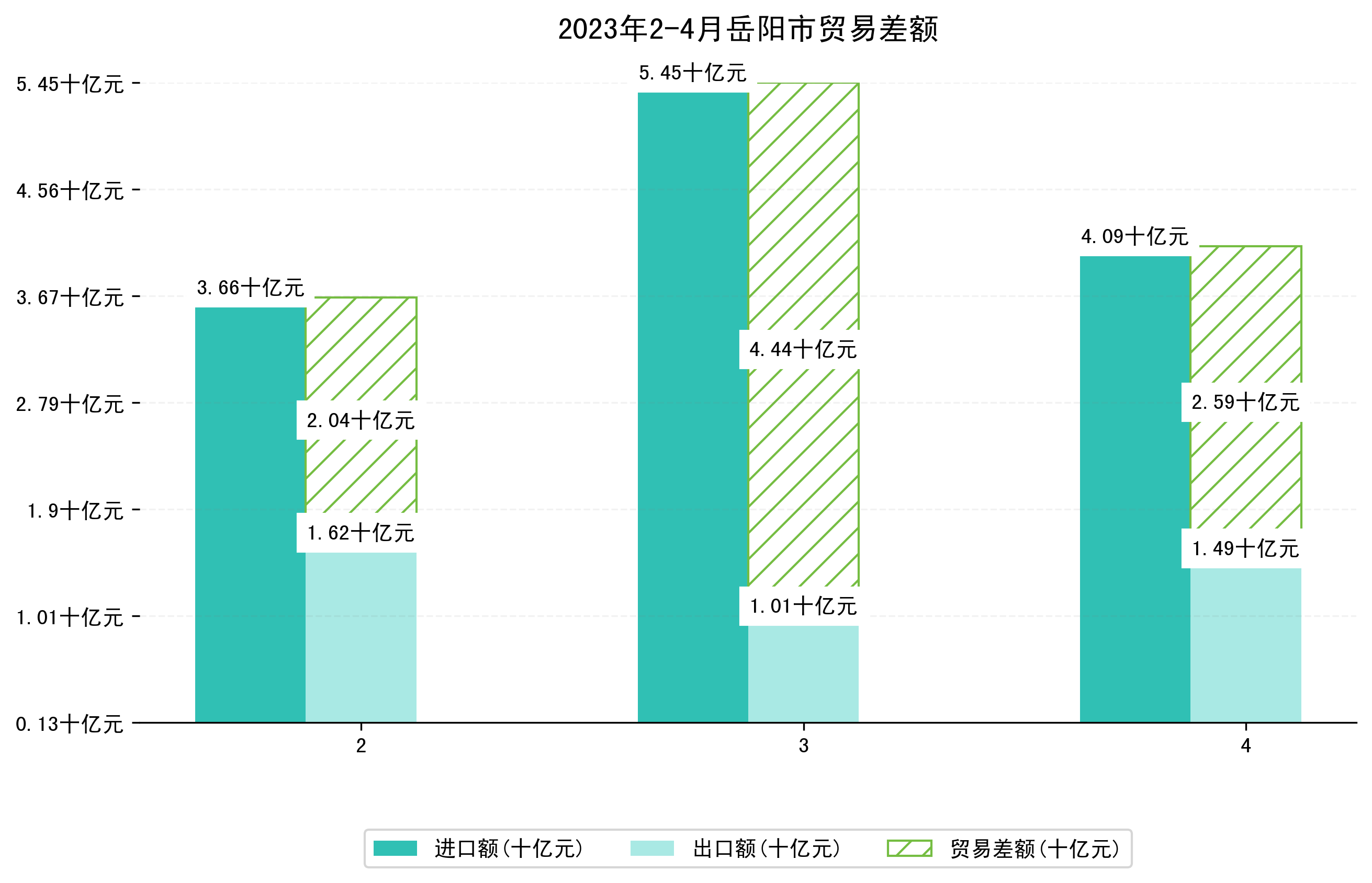 2023年4月岳阳市进出口总额及进出口差额统计分析