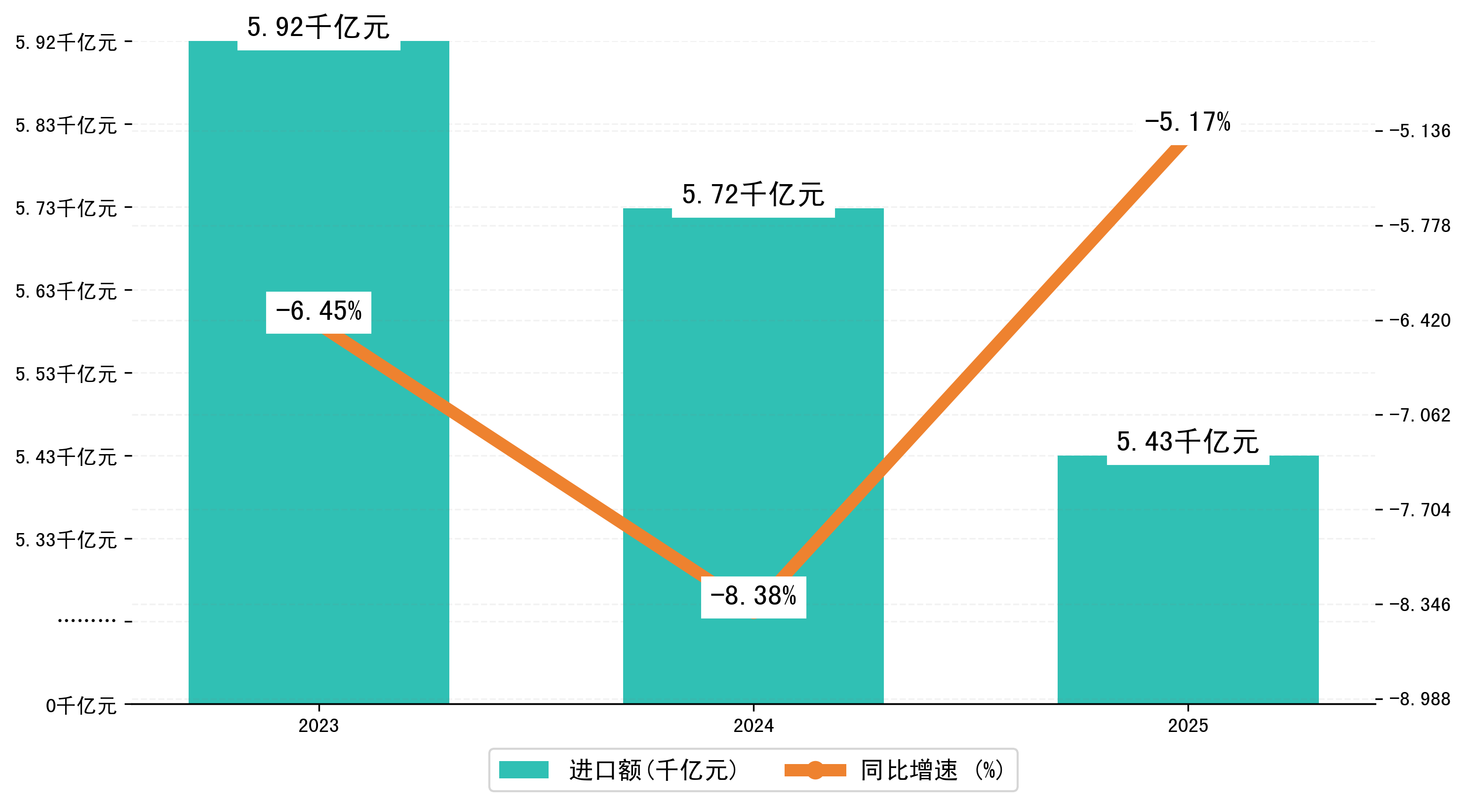 以人民币计,2025年1-9月福建省进口额为5427,8917.1663万元,相比上年同期减少了296,1955.5606万元,同比减少了-4.60%。